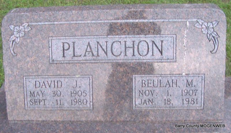 | PLANCHON, David John | May 30, 1905 Rural Monett, Barry Co., MO |