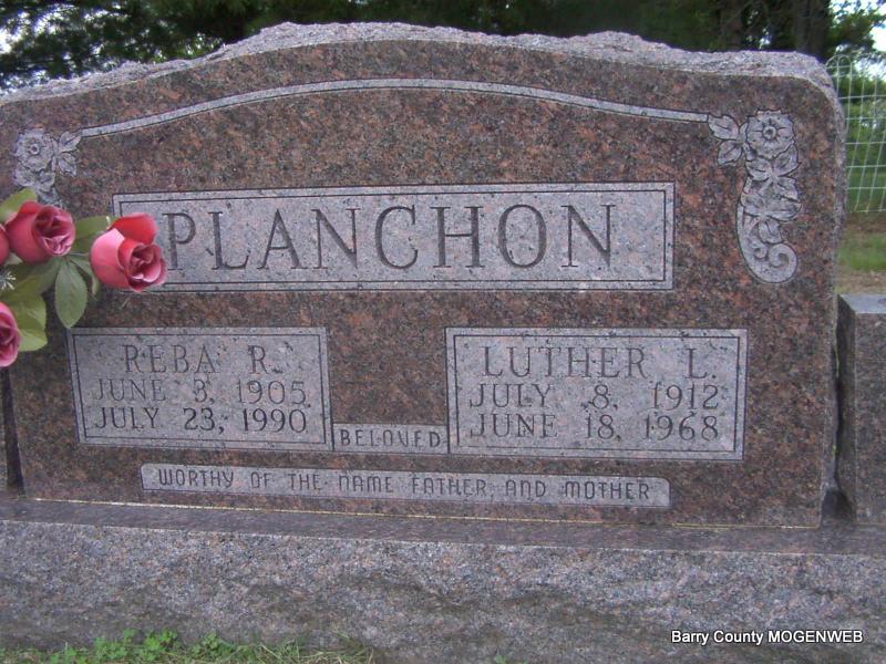 | PLANCHON, Luther Leonard | July 8, 1912 Monett, Barry Co., MO |