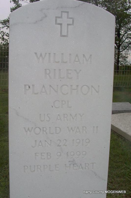 | PLANCHON, William Riley | Jan. 22, 1919 Monett, Barry Co., MO |