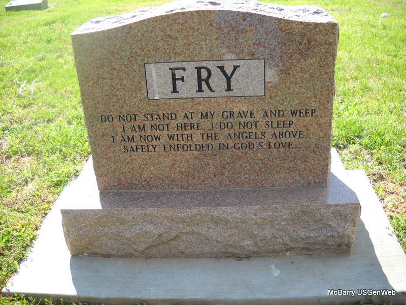 | FULTON, George W. | Jan. 8, 1848 | Mar. 1, 1916 Barry Co., MO |