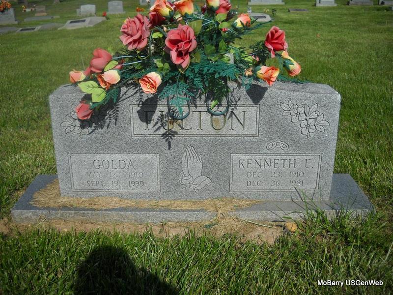SSW: Golda - Research Note: He married Golda Cantwell in 1929 and was the son of Creed Taylor Fulton and Missouri Pearl Varner. - 1920 Census, Missouri, Barry, Washburn, District 22 Creed T. Fulton, age 47, born MO - Pearl wife, age 36, born MO - Eugene (Kenneth), son, age 9, born MO - Jeston, son, age 4, born MO. | Note Heather Brown Census Phyllis Long Photo Donna Cooper |
