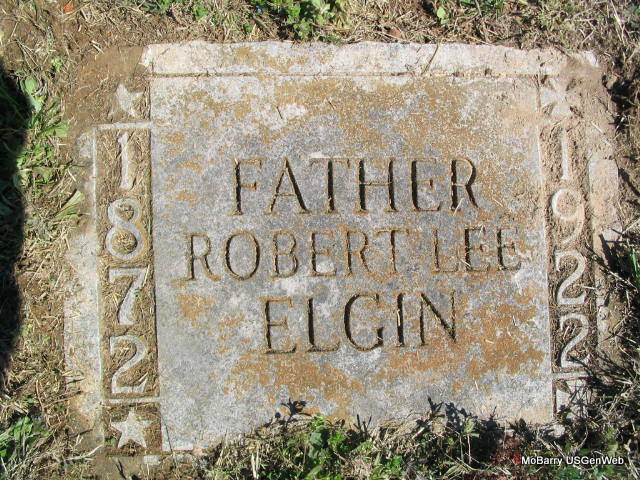 | ELGIN, Robert Lee | 1872 | 1922 | Inscription: "Father" - Research Note: Robert Lee Elgin was a brother of Allen W. Elgin - son of James Matthew and Mary (Stepp) Elgin. - Another Photo | Note Photo Linda Garrett Photo Phyllis Long |