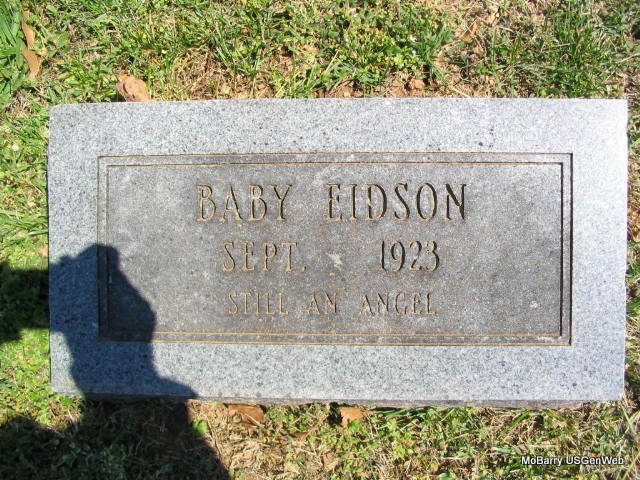 | EIDSON, Baby | Sept. 1923 | Sept. 1923 | Inscription: "Still An Angel" - Research Note: This child is buried between E. W. Stephens, and Anthony and Ruby Hutchens. | Note Photo Phyllis Long |