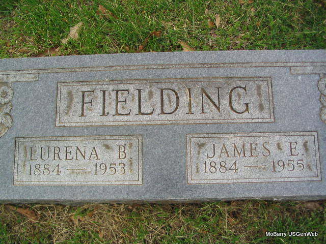 SSW: Lurena Bell - Research Note: He was a retired section hand for the Frisco railroad and a son of William B. and Emma (Williams) Fielding. He was a father of four sons and four daughters. His wife was Lurena Bell (Ellis) Fielding. Mrs. Donald Winning of Marshall, MO was the informant on the death certificate. He was widowed twice. | Online Obituary Joplin Globe, Dec. 11, 1955 Death Certificate Photo Phyllis Long |
