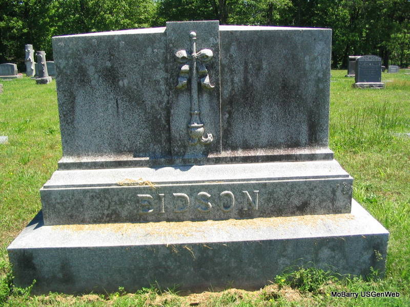 Research Note: Confederate Veteran, Civil War - He was a son of Pleasant Eidson. - 1850 Census, Kentucky, Logan, District 1 - Mary Eidson, age 81, born VA (probably Pleasant's mother) - Pleasant L. Eidson, age 41, born KY, Clifton Eidson age 9, born KY. - August 4, 1917, Cassville Democrat - When the war of the sixties came on, he enlisted on the side of the Confederate states and served with Gen. Sterling Price and was in Cassville, Oct. 31, 1861. He was married twice both having died. The following children were born: C. Ralph Eidson of Denver, Col., Mrs. Eugenia Hutchens of Cassville, R. 1, Miss Jemima and Phillip B. Eidson of Cassville. Phyllis' Note: Read complete obit online. - Plot Stone | Online Newspapers Death Certificate Census Photos Phyllis Long |