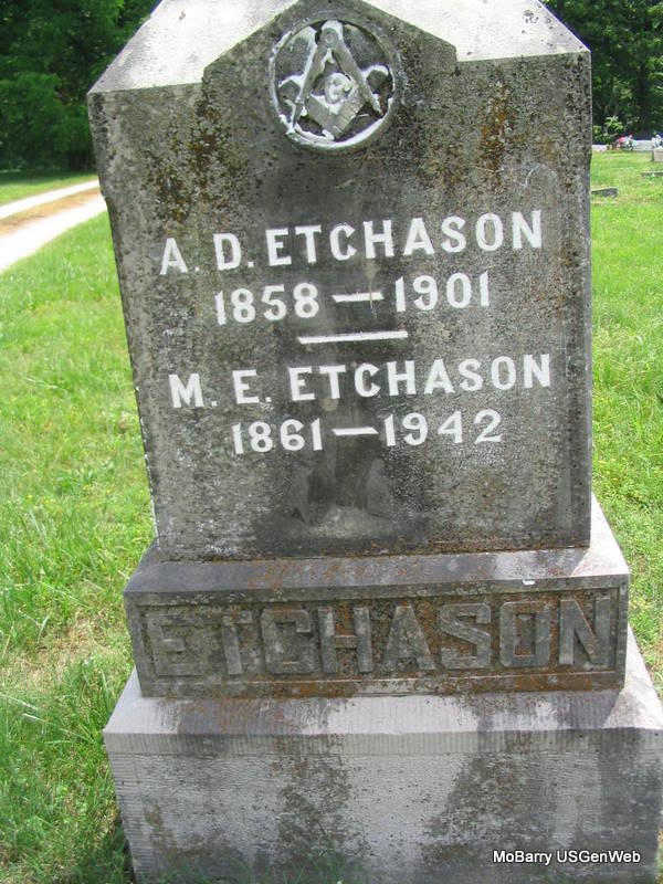 SSW: M. E. - Research Note: He married Mary Ellen Basinger and was a son of Jesse Filmore and Mary Ellen (Ragland) Etchason. | Note Census Marriages Donna Cooper Photo Phyllis Long |