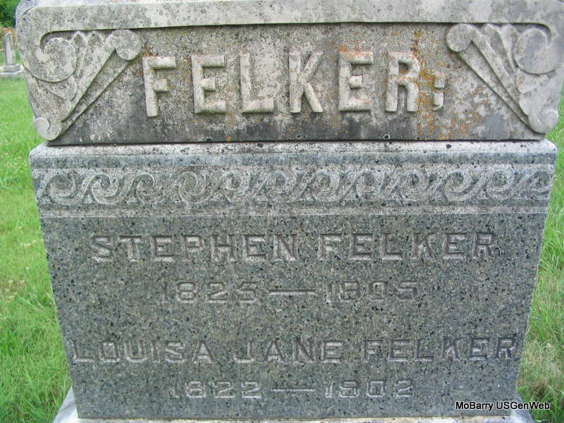1905 | SSW: Louisa Jane - Research Note: Stephen Felker married in Barry County, MO, Jan. 8, 1853, to Louisa J. Daugherty. He was a son of Peter and Nancy (Eaves) Felker. - Another Stone | Note Donna Cooper Photos Phyllis Long |