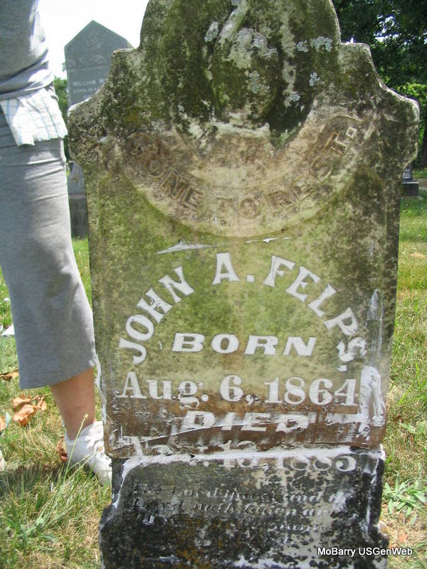 | FELPS, John A. | Aug. 6, 1864 | Nov. 13, 1885 | No Data | Photo Phyllis Long |