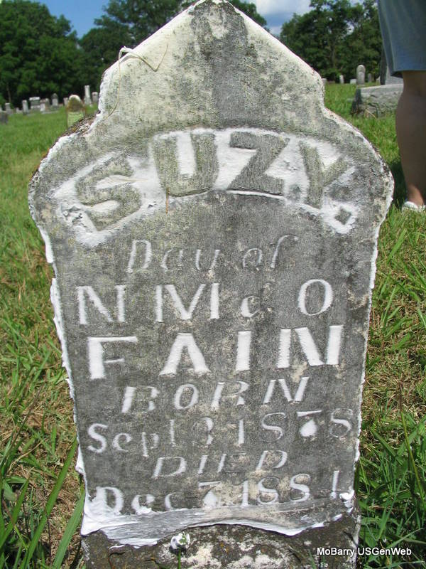 | FAIN, Suzy | Sept. 3, 1878 | Dec. 7, 1881 | Inscription: "Daughter of N. M. and O. Fain" | Photo Phyllis Long |