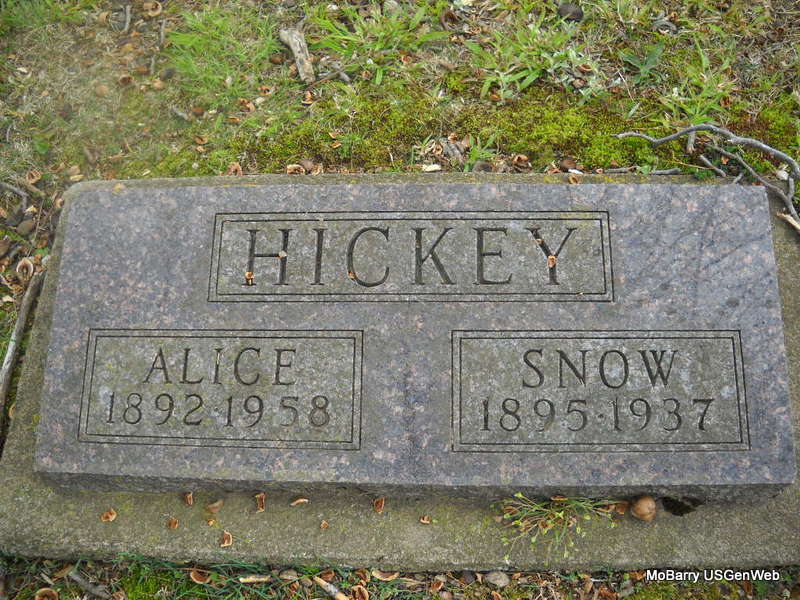 Research Note: Her death certificate reads that Clifton Eidson, born KY, was her father and her mother's name and birth place was unknown to the informant. She was married and her husband was W. W. Hutchens, age 62. The cause of death was carcinoma of the liver. The informant was W. W. Hutchens, Cassville, MO. Donna's Note: Her husband was William Wesley Hutchens. Phyllis' Note: Her mother was Mary F. Daley, her father's second wife and buried in Washburn Prairie Cemetery. - Plot Stone | Death Certificate Donna Cooper Note Photos Phyllis Long |