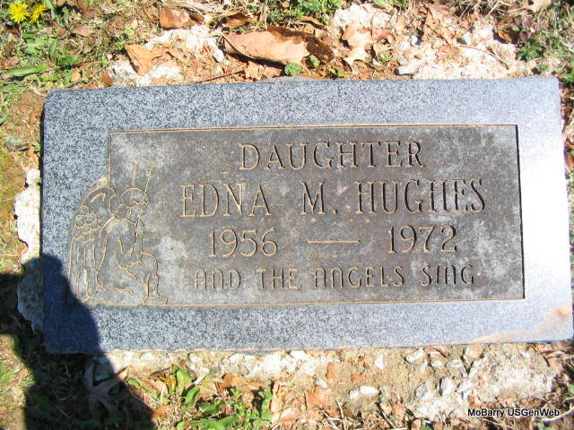 Inscription: "Daughter" - Research Note: Culver Funeral Home records state that her father was Edwin J. Hughes and her mother Opal C. Hoog. Listed that she was a child of Opal C. Hoog Whitcomb. She lived in Exeter, MO and was 16 years old. Rev. Earl J. Knowles, Cassville, MO, preached her funeral. | Culver Funeral Home V. 15, p. 58 by Ted Roller Donna Cooper Photo Phyllis Long |