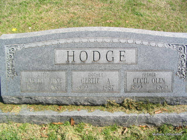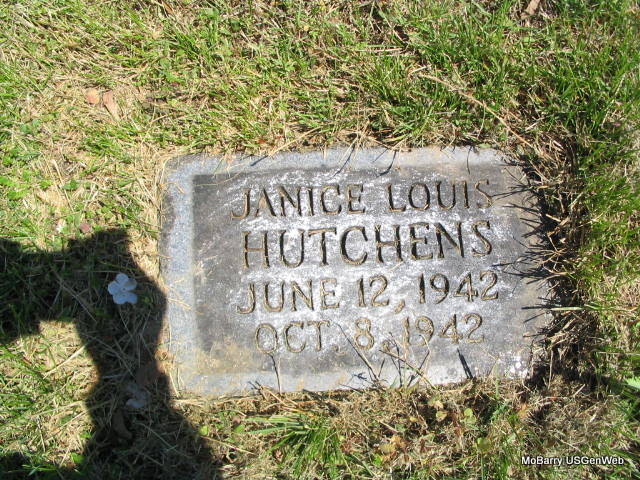 Research Note: Her stone reads that she died Oct. 8, 1942, but the death certificate has Oct. 7, 1942 as the death date. Toney Hutchens, born Barry Co., MO, was her father and Ruby Moore, born Barry Co., MO, was her mother. Mrs. Ruby Hutchens, Cassville, MO, was the informant. The stone reads Oct. 8, 1942 and has her middle name as Louis. | Death Certificate Donna Cooper Photo Phyllis Long |