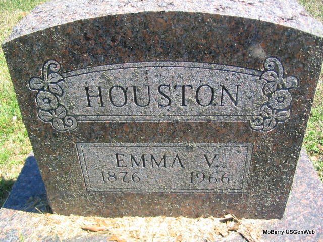 Research Note: Daughter of William Guiles and Elizabeth Westmoreland. Helen Snider was her closest relative and she had lived in the Jackson County, MO, community 20 years. Cassville Monument placed the stone at her grave. - Cassville Democrat, 13 July 1966 - Mrs. Emma Houston, 89 years old, formerly of Washburn, died Monday morning, July 11, in Kansas City, Mo., where she had lived for the past 20 years. She is survived by a son, Joe Forseille of Kansas City, Mo.; three daughters, Mrs. Marion Hollenbeck of Whittier, Calif., and Mrs. Helen Snider and Mrs. Louise Schoenhoff, both of Kansas City, Mo.; three stepsons, Loyd Houston and Arthur Houston, both of Washburn and Harold Houston of Fairview, Mo.; nine grandchildren and 15 great grandchildren. - She first married Frank H. Forseille on Aug. 10, 1898 in Jackson Co., MO. She was the second wife of Marion Edwin Houston. - 1930 Census, Missouri, Barry, Washburn, District 29 - M. E. Houston, age 50, born AR, railroad laborer; Emma, wife, age 53, born MN, father born NY, mother NC; Arthur, son, age 20 born AR, garage mechanic; Harold, son, age 14 born MO; Helen, daughter, age 8, born MO. | Culver Funeral Home V. 12, p. 45, by Ted Roller Donna Cooper Death Certificate MO Marriage Records Photo Phyllis Long |
