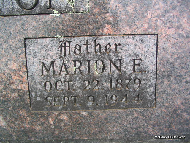 SSW: Marion E. - Inscription: "Mother" - Research Note: She was a daughter of Amos and Eliza Jane (Baker) Myers and is buried next to them. Her death certificate reads that she was born in 1883. The cause of her death was tuberculosis. Grady Windes was the undertaker. - 1920 Census, Missouri, Barry, Washburn, District 22 - Edwin Houston, head, age 41 born AR; Maggie, wife, age 32 born AR; Loyd, son, age 17 born AR; Clyde, son, age 12, born AR; Arthur, son, age 9 born AR; Harold, son, age 5, born MO. - Another Photo | Note Death Certificate Donna Cooper Census Photos Phyllis Long |