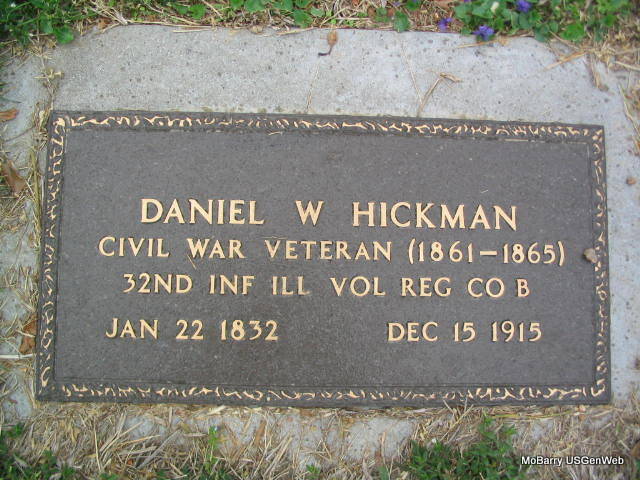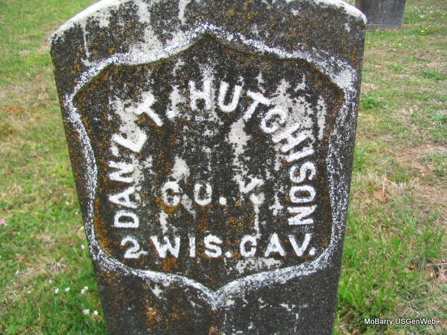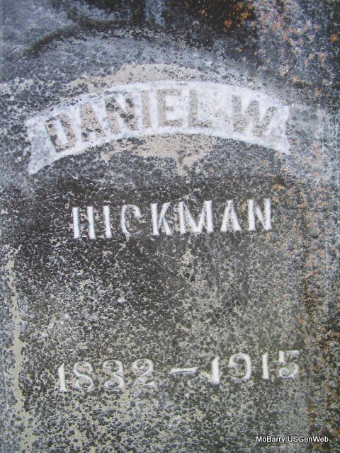 Inscription: "Co K. Wis. Cav." - Research Note: According to his death certificate he was married, wife not given, retired minister. He was a Civil War Veteran, K 2 Wis Cavalry. He filed for his pension on Mar. 24, 1879. Ella filed on Apr. 14, 1922. His father was Robert Hutchison and mother's maiden name was Michael. Mrs. D. T. Hutchison was the informant. Cause of death was senility. He married Charity Ann Green on Aug. 16, 1868 in Green Co., WI, divorced. He married Ella T. Henson on Aug. 30, 1893 in Leavenworth Co., KS. - 1910 Census, Missouri, Barry, Ash, 0001 Daniel T. Hutchison, head, age 63 born IL; Ellen, wife, age 48 born MO, married 16 years, mother of 1 child; Flossie, daughter, age 13, born KS; Ernest Stevens, age 14 born SD. His wife was Ella T. Henson. | Death Certificate Census Photo Phyllis Long |
