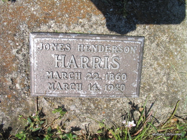 Research Note: His death certificate reads that his wife was named Emma Margaret Harris. The cause of his death was heart attack, following the flu. He was a farmer. His father was John W. Harris, born IN, and his mother's name and birth place were unknown to the informant, Mrs. Emma Harris. He is buried next to the Henderson plot and near John Harris Pennels, his grandson. | Death Certificate Donna Cooper Photos Phyllis Long |