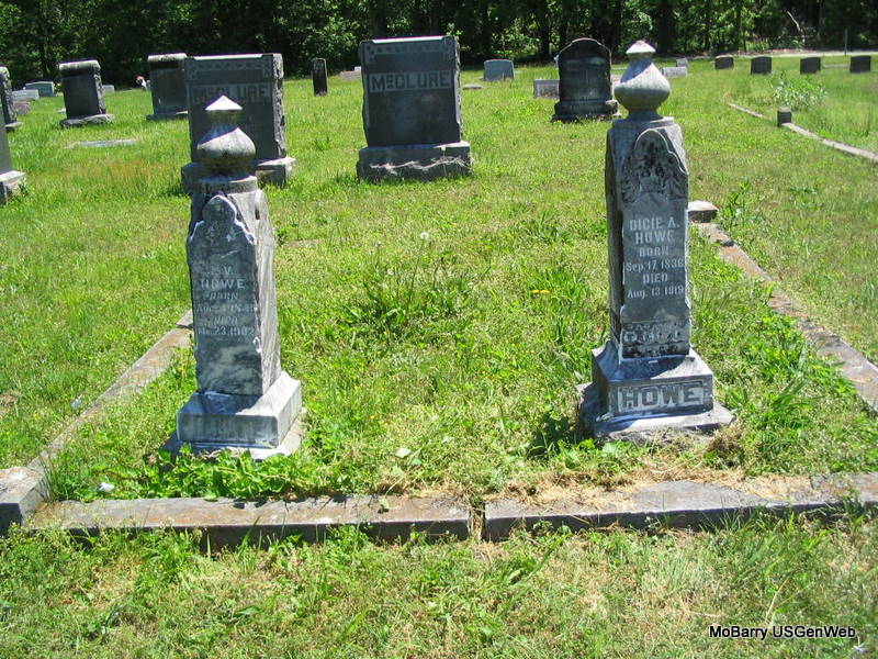 Research Note: Daughter of John L. Stratton and Frances Clay. Wife of John V. Howe. In 1900 John and Dicie were living in Richmond Twp., McDonald County, MO, and John was listed with a birth date of Aug. 1840, born in Ohio. Dicie was listed as born in TN with a date of Sept. 1836. They had been married 39 years and had no children. - Another Photo | Census Donna Cooper Photo Phyllis Long |