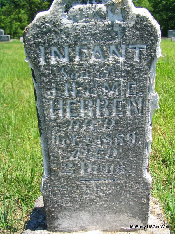 | HORTON, John Paul | May 17, 1910 | Jan. 18, 1913 | Inscription: "Son of H. M. & C. A. Horton" - Research Note: This obit reads Pearl Horton - but it must be for John Paul Horton since the death date is the same. - January 23, 1913, Thursday, Cassville Republican - Little Pearl Horton, died of pneumonia, Jan. 18, at the home of his parents, Mr. and Mrs. Horton, aged three years. | Online Obit Photo Phyllis Long |