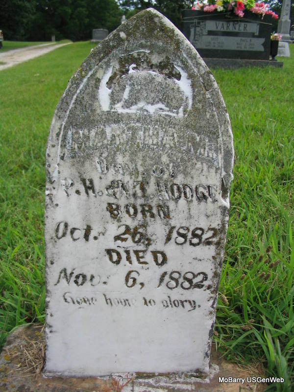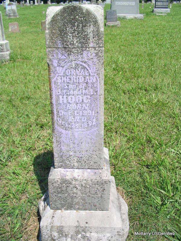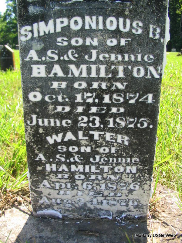 | HAMILTON, Simponius B. | Oct. 17, 1874 | June 23, 1875 | SSW: Walter - Inscription: "Son of A. S. & Jennie" - Research Note: Son of Audley Simphonious Hamilton and Eleanora Jennie Hurst. | Note Photo Phyllis Long |