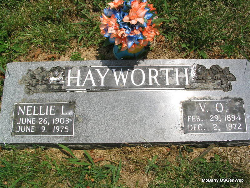 Research Note: Husband of Violet (Shockley) Hayworth - no children. He was the son of Van Oliver Hayworth and Nellie Leona Giles. Loretta (Bargay) (Lloyd) Tilford, age 31, married Lester Hayworth on Aug. 15, 1960 in Cassville, Barry Co., MO. | Headstone Note Betty Fountain Erickson MO Marriage Records Photo Phyllis Long |