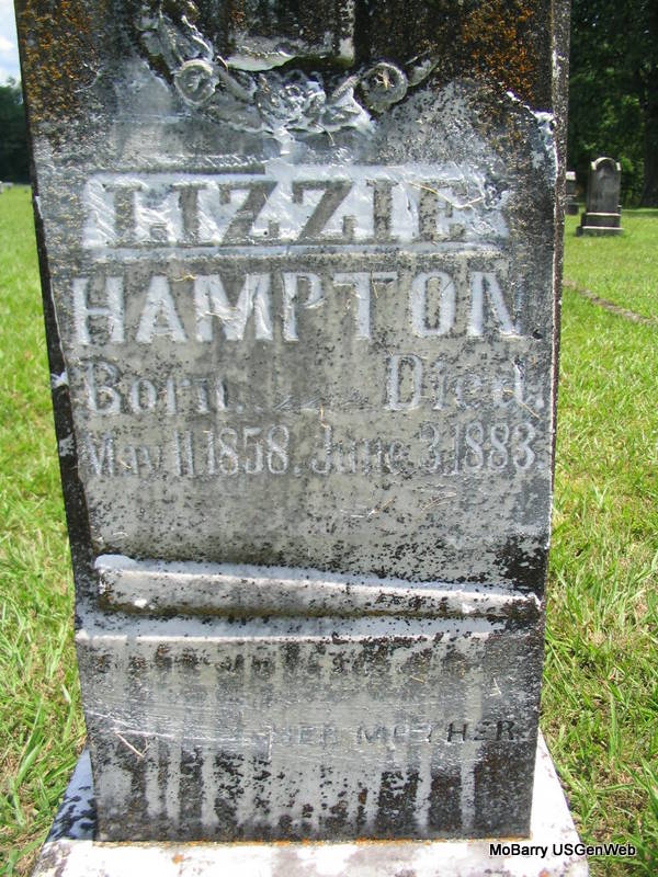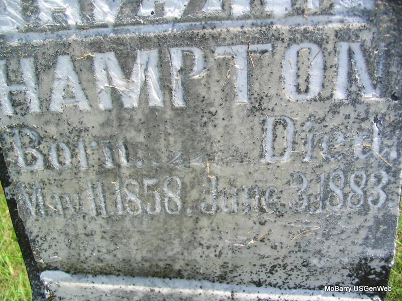 | HAMPTON, "Lizzie" Amanda Elizabeth | May 11, 1858 | June 3, 1883 | Research Note: She was the daughter of George W. Hampton and Martha E. Daugherty, married on Aug. 18, 1857. Martha married second John Milky Stark. Lizzie was a school teacher. - Another Photo | Census Photos Phyllis Long |