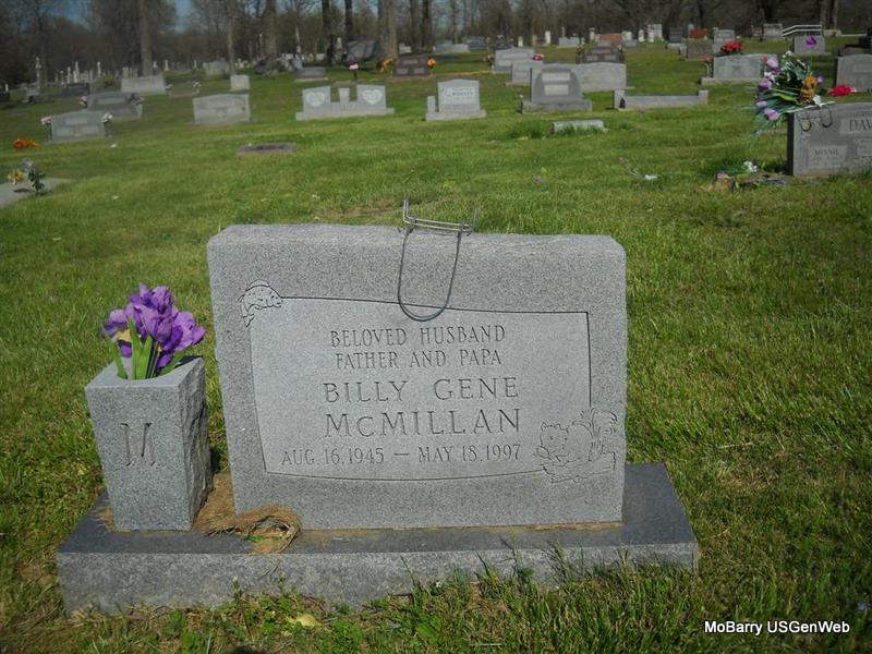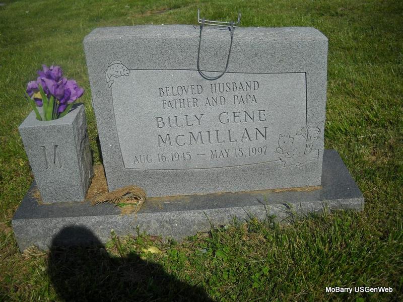 Research Note: Goodspeed's History, pub. 1888, Barry Co., MO - Hugh S. Montgomery was born in Washington Co., VA in 1828, and is a son of Thomas and Elizabeth (Scott) Montgomery, both of whom were also natives of Washington Co., VA. Thomas Montgomery was born in 1791, and was a farmer. He served throughout the War of 1812 under Gen. Jackson, and participated in the battle of New Orleans. After the war he returned home, but in 1817 he served with Gen. Jackson in the Seminole Indian War, after which he returned to VA. He married in 1920, and engaged in farming in his native county until 1929, when he sold his farm and removed to Bradley Co., TN, where he resumed farming. For several years he served as justice of the peace of his township, but he cared very little for public life. He died on his farm in Bradley Co. in 1854. His wife was born in 1892, of Scotch parentage. They were the parents of eleven children, seven of whom, Mary A., Sarah J. (Mrs. John Hurt), Martha, Hugh S., John, Samuel and Richard, who died in 1855, reached maturity. At the age of sixteen years Hugh S. left the home of his parents to work for himself. He served an apprenticeship of three years at the gunsmith trade, With Hiram Pendergrass of Cleveland, TN, after which he worked with various good workmen in different parts of the country, in order to perfect himself in his trade. In 1850 he married Elizabeth Lowery, of Bradley Co., TN, and located in Benton, TN, where, together with his trade, he worked at blacksmithing, wagon making and manufacturing plows, at which he was very successful. When the financial crisis of 1857 interfered with his business in TN, he sold out and removed to Barry Co., MO, settling on a farm of 100 acres on Washburn Prairie. Soon after he built a shop and again on the road to prosperity. The war swept away all he had except his farm and repair shop,, and for a year after the close of hostilities he worked at his trade in Cassville, after which he repaired the machinery in the numerous mills of Barry and surrounding counties. By good management he has added to his land, until now he has a farm of 365 acres of well improved land, and is considered one of the leading farmers of the county. For the last few years he has turned his attention to stock raising, and been very successful in breeding fine stock. His wife was born in Rockingham Co., VA, in 1835, and is the only one left of a family of nine children, her parents and the children having died of consumption. Mr. and Mrs. Montgomery have seven children, viz: Thomas H., Samuel S., Hugh S., Timothy L., Elizabeth (Mrs. G. M. Brixey), Clementine and Clara. Besides rearing their own children , they have raised and educated eighteen orphan children, most of whom are married and doing well. Three of the sons, Thomas, Samuel and Hugh S., are engaged in business at Eureka Springs, AR. The family are communicants of the Methodist Episcopal Church South. - Montgomery Plot Stone | Note Beverly Matthews (Deceased) Headstone Donna Cooper Goodspeed Photo Phyllis Long |
