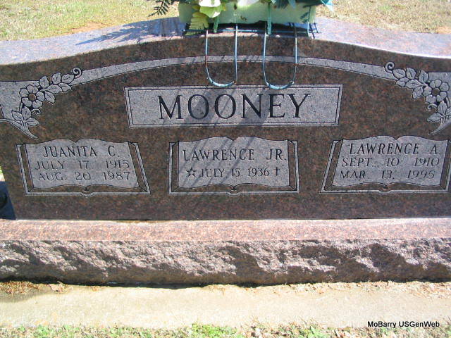 SSW: Juanita C. and Lawrence - Research Note: Stone only reads 1936. He was a son of Lawrence and Juanita (Morgan) Mooney and they had no other children. - Another Stone - Another Photo - Another Photo - Another Photo | Photos Family Donna Cooper Photos Phyllis Long |