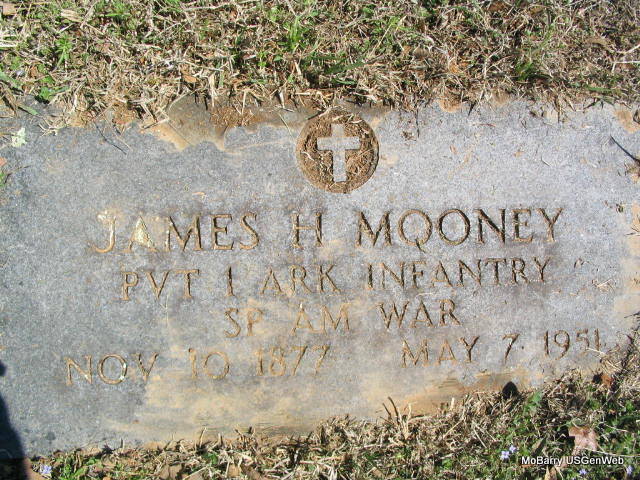 SSW: Ella Mae Pease - Inscription: "PVT 1 ARK INFANTRY SP AM WAR" - Research Note: He was a son of America Simpson and his father was George Simpson. His brother was John Simpson, buried in Washburn Prairie. Timothy Patrick Mooney was his adoptive father. His half sister was Dovey Louise (Bailey) Payton who is buried in Union Cemetery, near Powell. On Sept. 19, 1951 Mrs. Ella Mooney, Washburn, Missouri, bought a stone for she and James H. Mooney. It was delivered on Oct. 6, 1951 and set by Cassville Momument Company. It was a gray granite, Carthage stone. She paid $147.90 for it and gave $10.00 down. There was an undertakers marker there where the stone was set. - Another Stone - Another Photo - Another Photo | Photos Family Cassville Monument Federal Census Marriage Record Death Certificate Donna Cooper Photos Phyllis Long |
