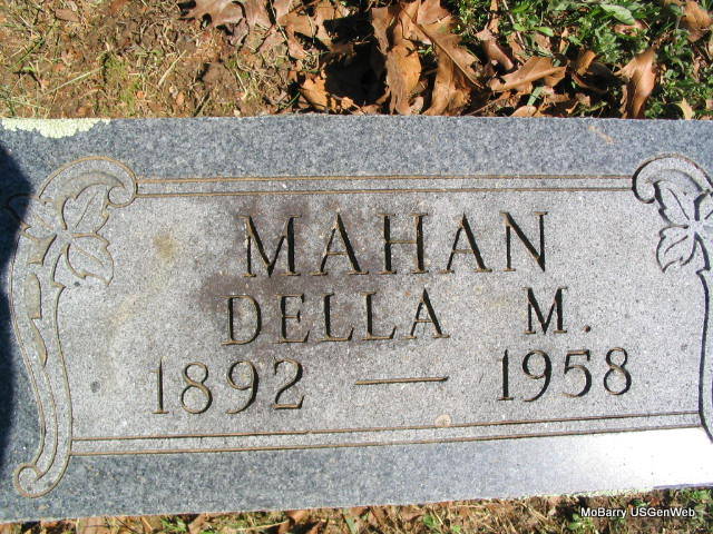 Research Note: His death certificate reads that he was born Jan. 10, 1887, and the stone has 1885 as his birth date. He lived 4 1/2 miles north of Washburn, where he died. He had lived in the community 31 years. The cause of death was carcinoma of the liver. His wife was given as Della Mahan, age 59. His father was John Mahan, born Eminence, MO and his mother was Martha Gillahan. Mrs. Della Mahan, RFD Washburn, MO, was the informant. | Death Certificate Donna Cooper Photo Phyllis Long |