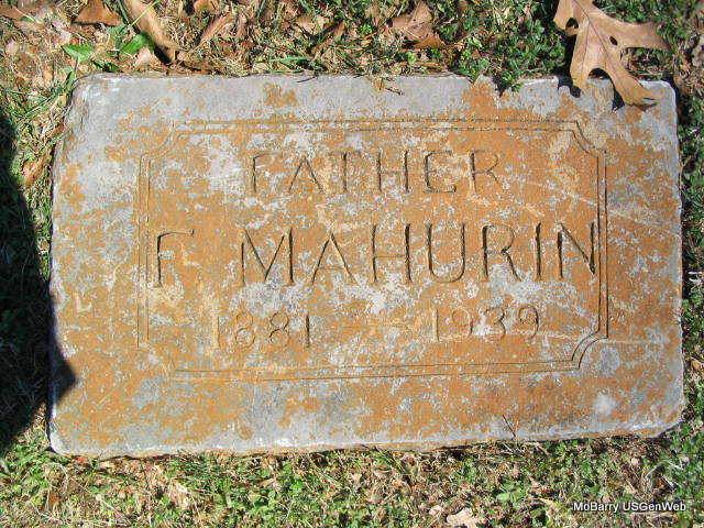 Inscription: "Father" - Research Note: He is buried next to Luzetta A. He was known as Lafayette. His stone reads F. Mahurin, which matches with the death certificate listing of Fayette. He was a son of William G. and Sarah Ellen (Rose) Mahurin. He was the father of 4 sons and 2 daughters. His wife was Luzetta Taylor. Donna's Note: The death certificate reads that his name was Fayette Mahurin. His father was William Mahurin and his mother Ellen Rose, born in McDonald Co., MO. Virgil Mahurin, Pierce City, MO, was the informant. The date on the death certificate for his birth is Mar. 14, 1881, which is the same year that the stone has. | Family History Betty Fountain Erickson Death Certificate Donna Cooper Family History Photo Phyllis Long |