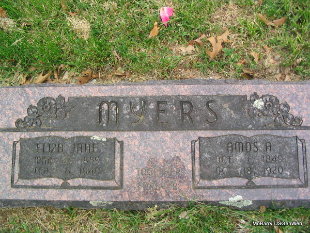 | MYERS, Eliza Jane (BAKER) | Mar. 27, 1859 MO |
