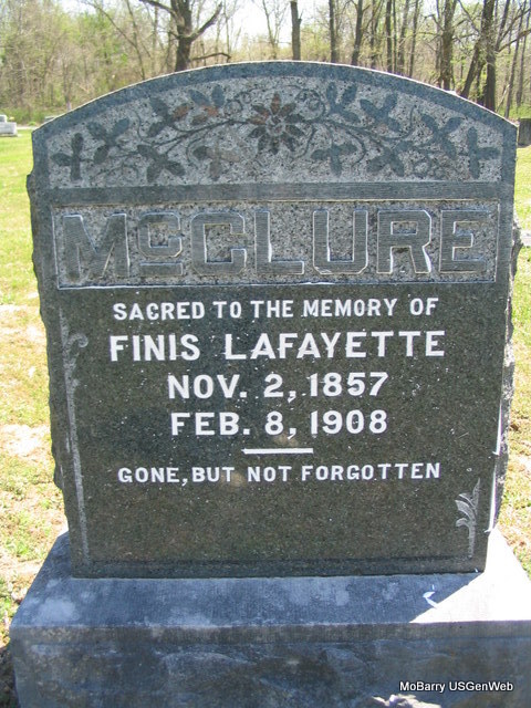 | MCCLURE, Finis Lafayette | Nov. 2, 1857 | Feb. 8, 1908 Barry Co., MO |
