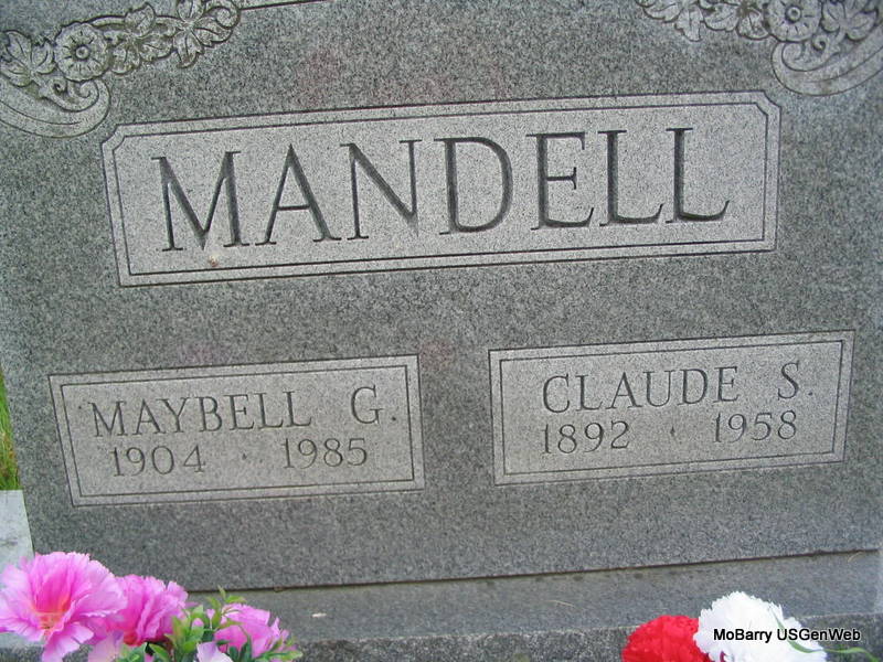 SSW: Maybell - Inscription: "MO SGT BRIG FA REPL DRAFT WW I" - Research Note: Culver Funeral Home record states that Maybell Mandell was his closest relative. His place of birth and his parents names are not mentioned. He was a cafe owner and Rev. Tim Larkin, Purdy, MO, preached his funeral. - Cassville, Barry Co., MO resident. Son of Albert Mandell and Amelia Viahulle. Liver cancer was the cause of death. - Another Photo | Culver Funeral Home V. 9, P. 36 Donna Cooper Death Certificate Photos Phyllis Long |