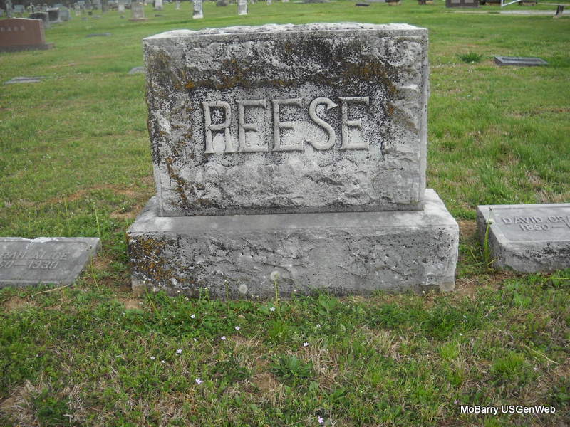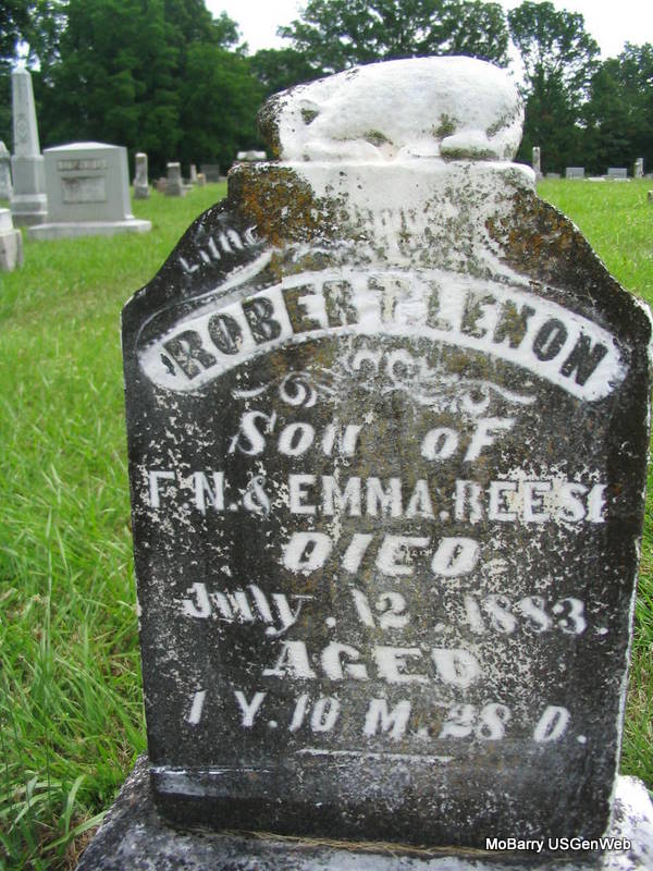 Inscription: "Aged 1 Y. 10 M. 28 D. - Son of F. N. & Emma" - Research Note: He was the son of Francis "Frank" N. Reese and Emma Isabel Jeffries, married May 27, 1880 in Barry Co., MO. | MO Marriage Records Photo Phyllis Long |