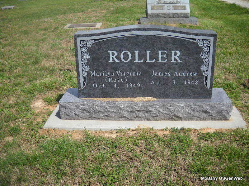 | ROLLER, James Andrew | Apr. 3, 1948 | No Date | SSW: Marilyn Virginia - Research Note: Son of Fred Roller born Washburn, MO and Wanda Pauline Burnette born Washburn, MO. - Back of Stone - Another Photo | Note Phyllis Long Photos Donna Cooper |