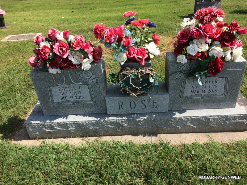 SSW: L. Denver - Inscription: "May 5, 1945" - Research Note: Daughter of John Edward Watson and Bertha Mae Dorris. On May 5, 1945 in Cassville she was united in marriage to Denver Rose who preceded her in death on March 14, 2016. Also preceding her in death were her parents; one son Larry F. Rose; three brothers, Paul, Gay and Harve Watson and three sisters, Myrtle Daniels, Audrey Stewart and Faye Stewart. Dorris grew up and received her education at Washburn, where she graduated from high school on May 4, 1945. She and Denver lived in Cassville for many years and in 2004 they moved to Seligman to make their home. - Another Photo - Another Photo | Fohn Funeral Home Photo Phyllis Long Photos Donna Cooper |