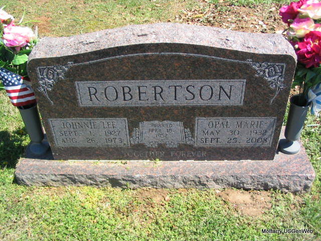 | ROBERTSON, Opal Marie "Sarie" (MYERS) (WEST) | May 30, 1932 Washburn, Barry Co., MO |