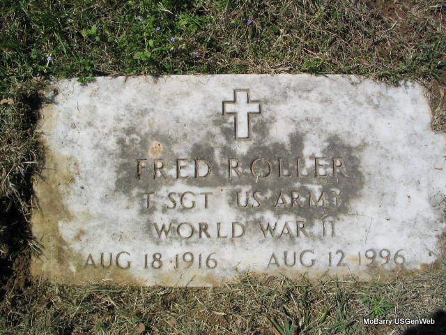 SSW: Wanda - Inscription: "Married June 4, 1938" - Inscription: "T SGT US ARMY WORLD WAR II" - Research Note: He married Wanda Burnette, July 4, 1938, Barry Co., MO. He was a son of James Monroe and Sally (Skelton) Roller. - Another Photo | Note Donna Cooper Photo Phyllis Long |