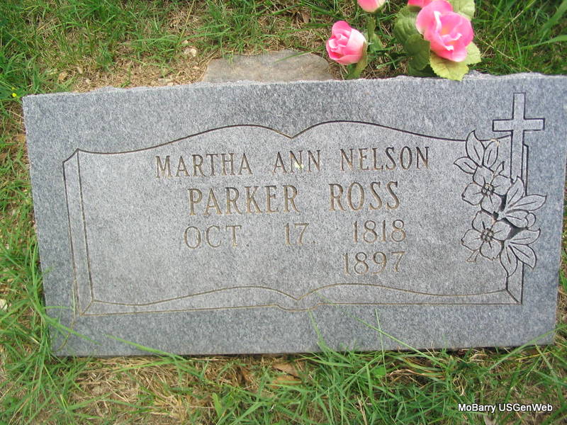 Research Note: Daughter of Ambrose Nelson and Joyce Faulkner of Fayette Co., KY. She first married Thomas Bryant Parker in Marion Co., MO, on Oct. 25, 1835 and was his second wife. Thomas Bryant Parker died in 1850 in Council Bluffs, IA, and Martha was his second wife. She married second Melvin N. Ross on Mar. 14, 1856 in Fayette Co., KY. Melvin Ross died in Cherokee, KS, in 1896. Her daughter Orpha Elvira was married to Joseph Paul. | Note Donna Cooper Photo Phyllis Long |