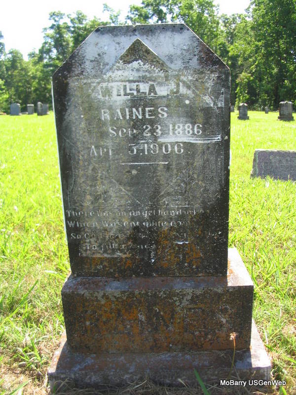 SSW: Delilah J. - Research Note: He was the son of Robert Roebuck Raines and Elizabeth Caneda. He first married Susan Elizabeth Paul in Salem, Henry Co., IA and had one son Robert Darl Raines. He second married Delilah Jane Marshall in 1874, Barry Co., MO and had children: Daniel who died an infant; Caddie; Gertrude May; James Franklin; Eda Iola; Willa Josephine; Stella Grace; and Joseph Lee. - Another Photo | Johnny Raines at Ancestry.com Photo Phyllis Long |
