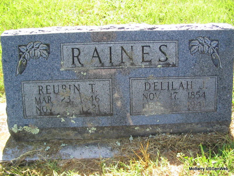 SSW: Reubin T. - Research Note: According to her death certificate Delilah Jane Raines was a daughter of Joseph Marshall, born TN, and Sarah Patterson, born TN. Ruben Raines was her husband's name, and he was age 70. She had lived most of her life in Barry Co., MO. Mrs. Clarence Farwell, Washburn, MO, was the informant. - Another Photo | Death Certificate Donna Cooper Photos Phyllis Long |