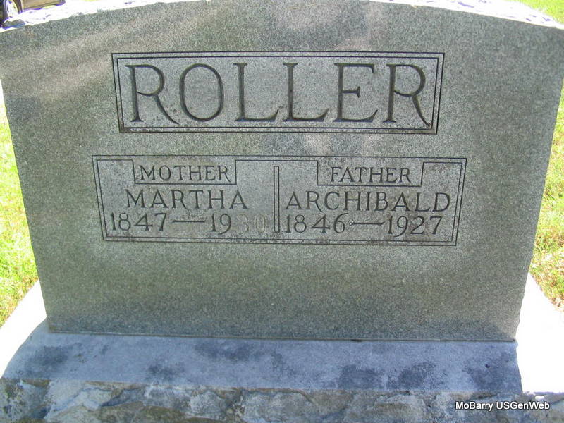 | ROLLER, Robert | 1876 | 1924 | Research Note: He is buried next to J. E. Roller, one grave down from Archibald and Martha Roller. Federal Census for 1880 - District 5 - Flat Creek Twp., Barry Co., MO, - has Robert Roller, age 3, born MO, with Archibald Roller, born VA, and Mattie, born TN. Son of Archibald Roller and Martha Mattie Trent. | Online Newspapers Census Photo Phyllis Long |