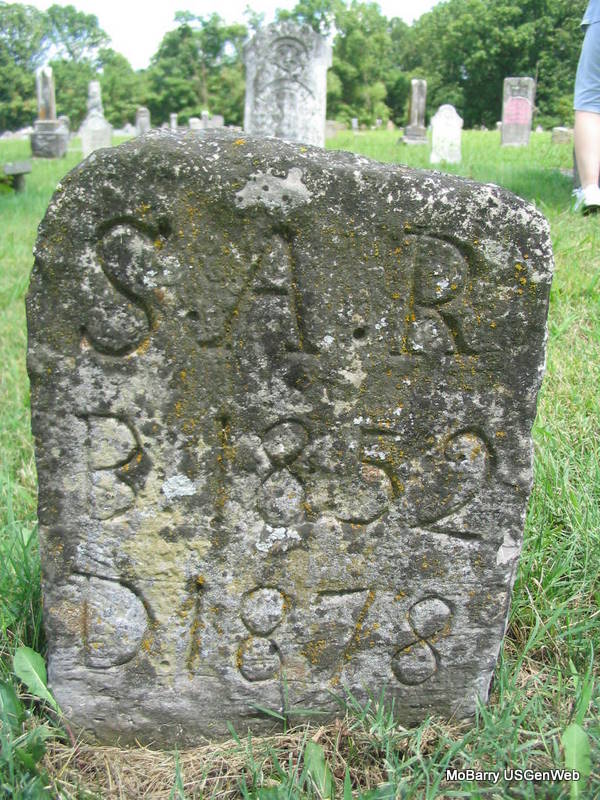 | S. A. R. | 1852 | 1878 | Research Note: This is a homemade marker and is next to M. D. R. This one might be Price. | Photo Phyllis Long |