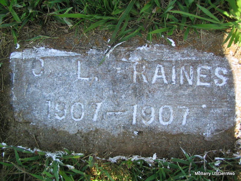 | RAINES, C. L. | 1907 | 1907 | Research Note: This is a homemade marker and matches the one for James Jefferson Raines. It is also next to the James Jefferson Raines marker. | Note Donna Cooper Photo Phyllis Long |