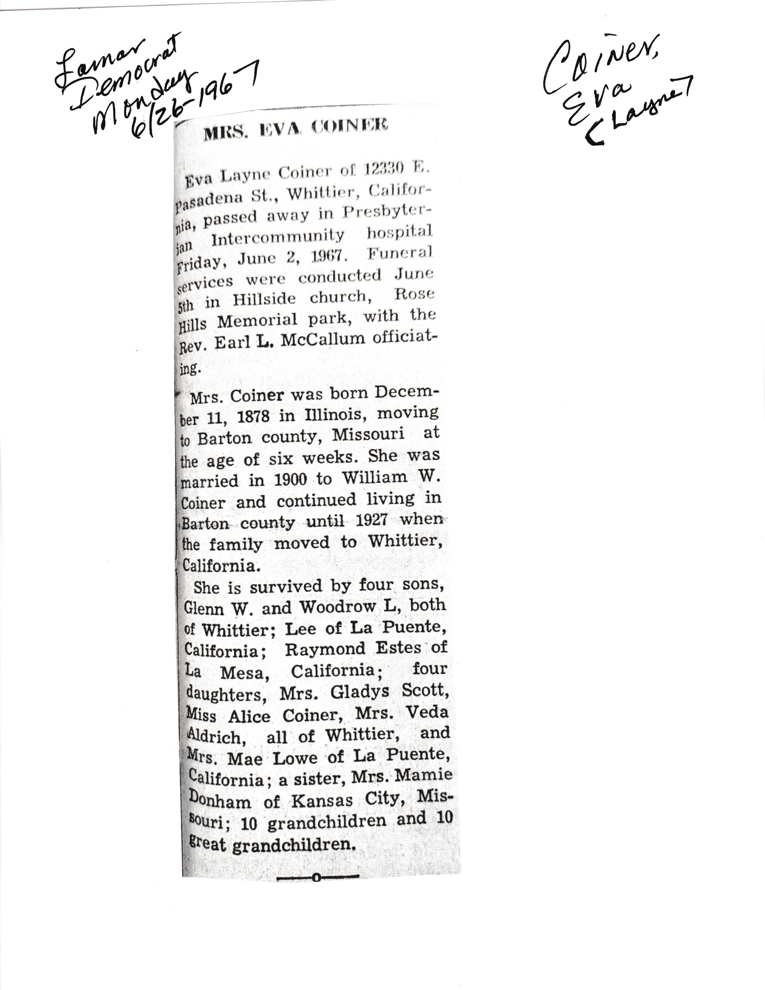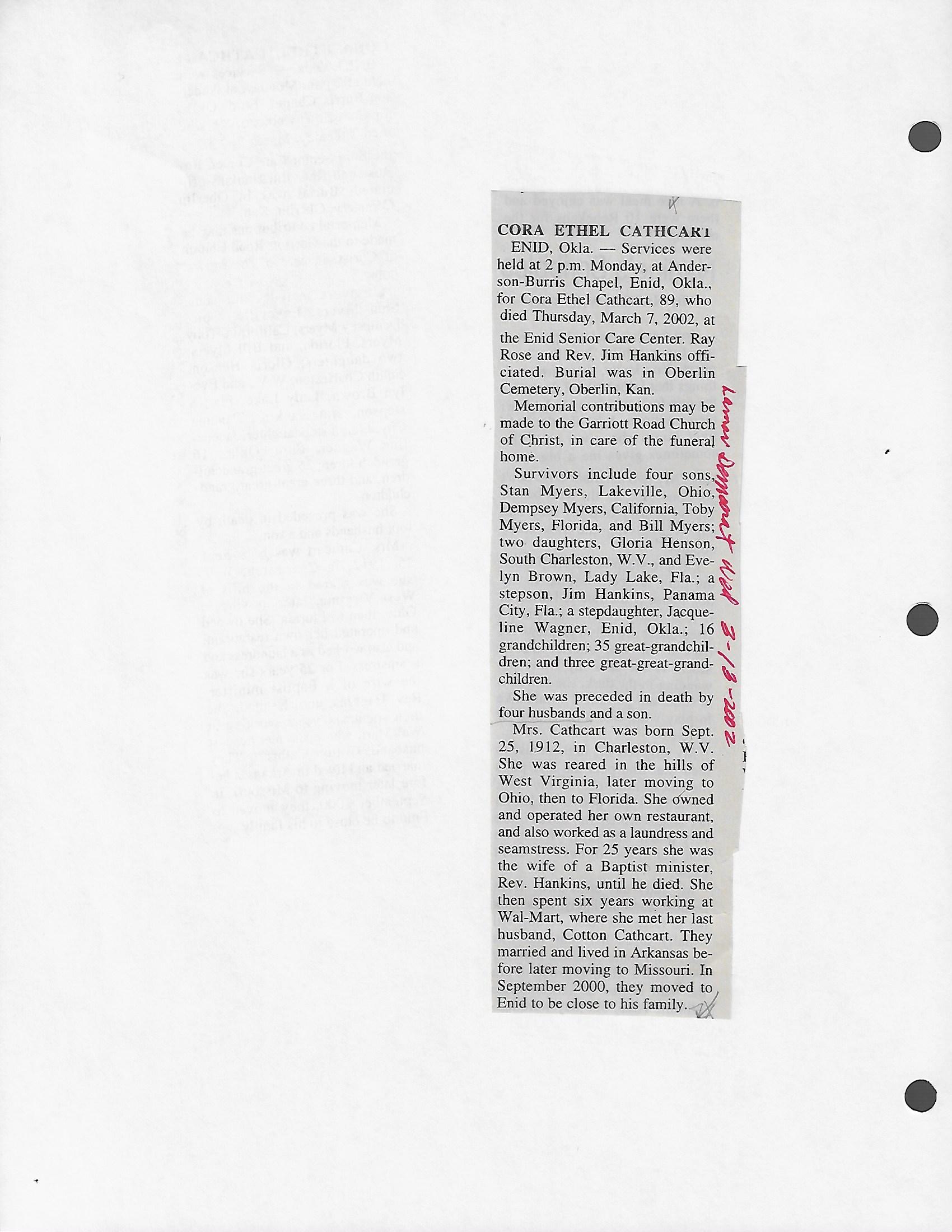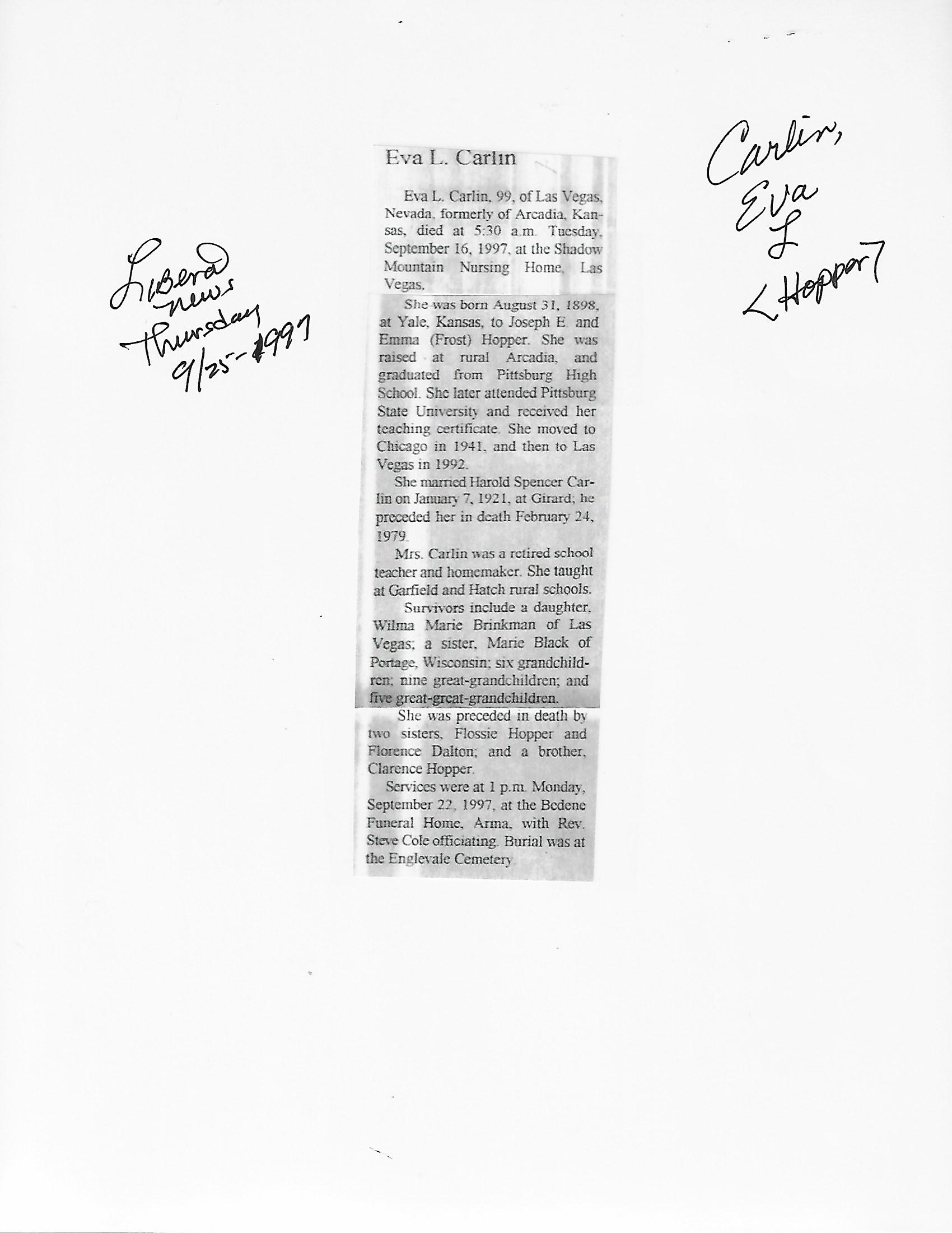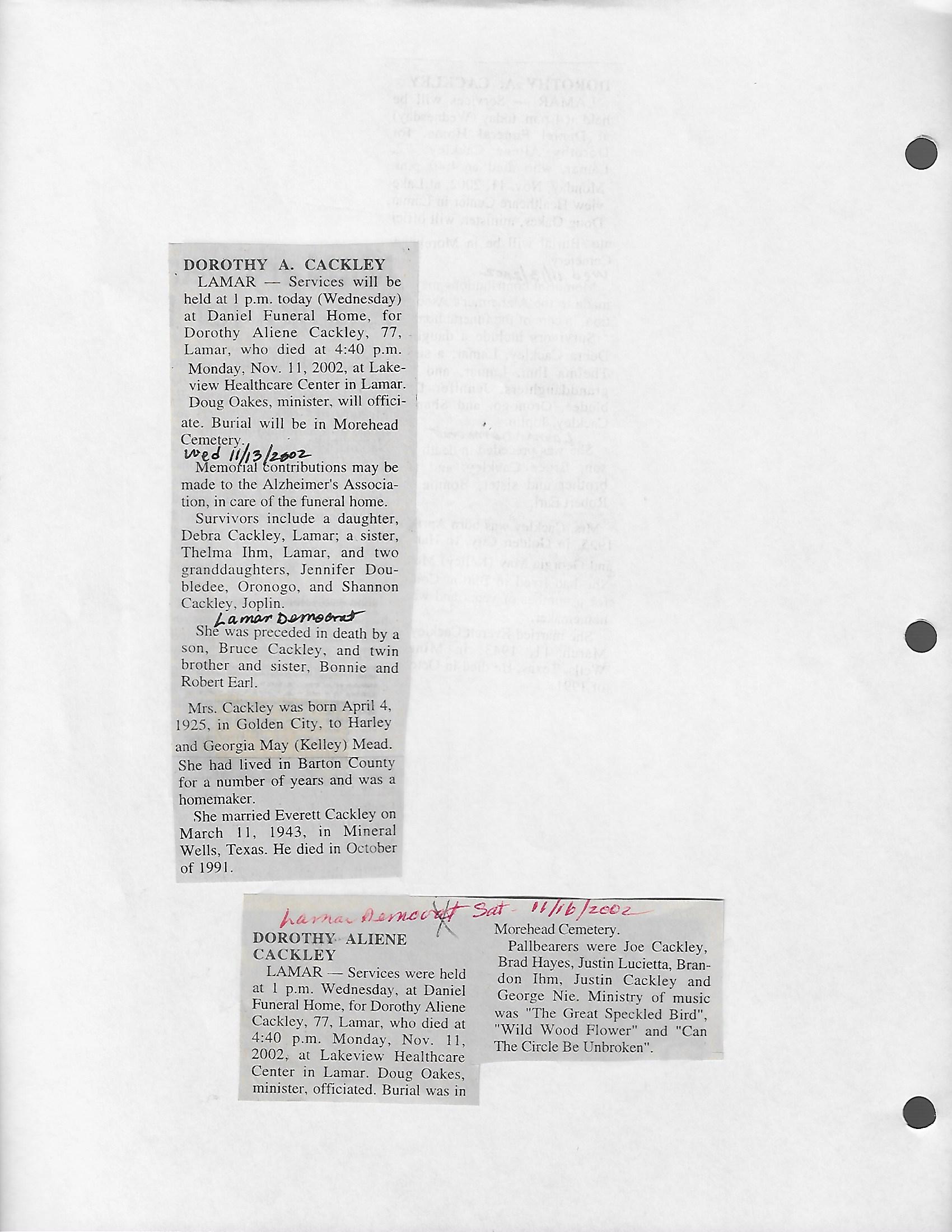 Cackley, Eva Irene
