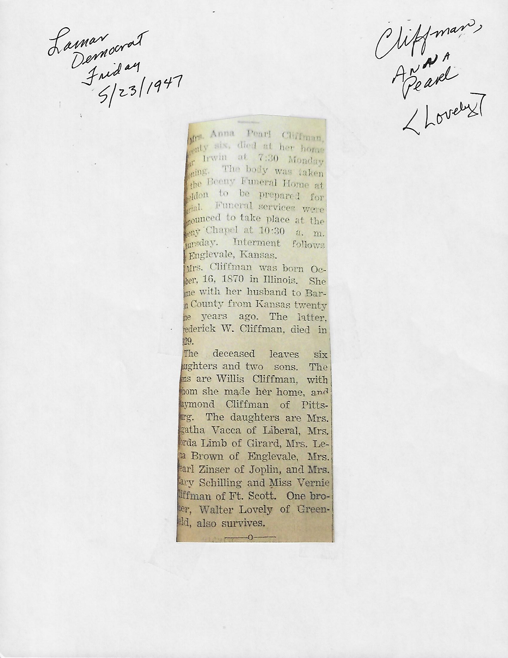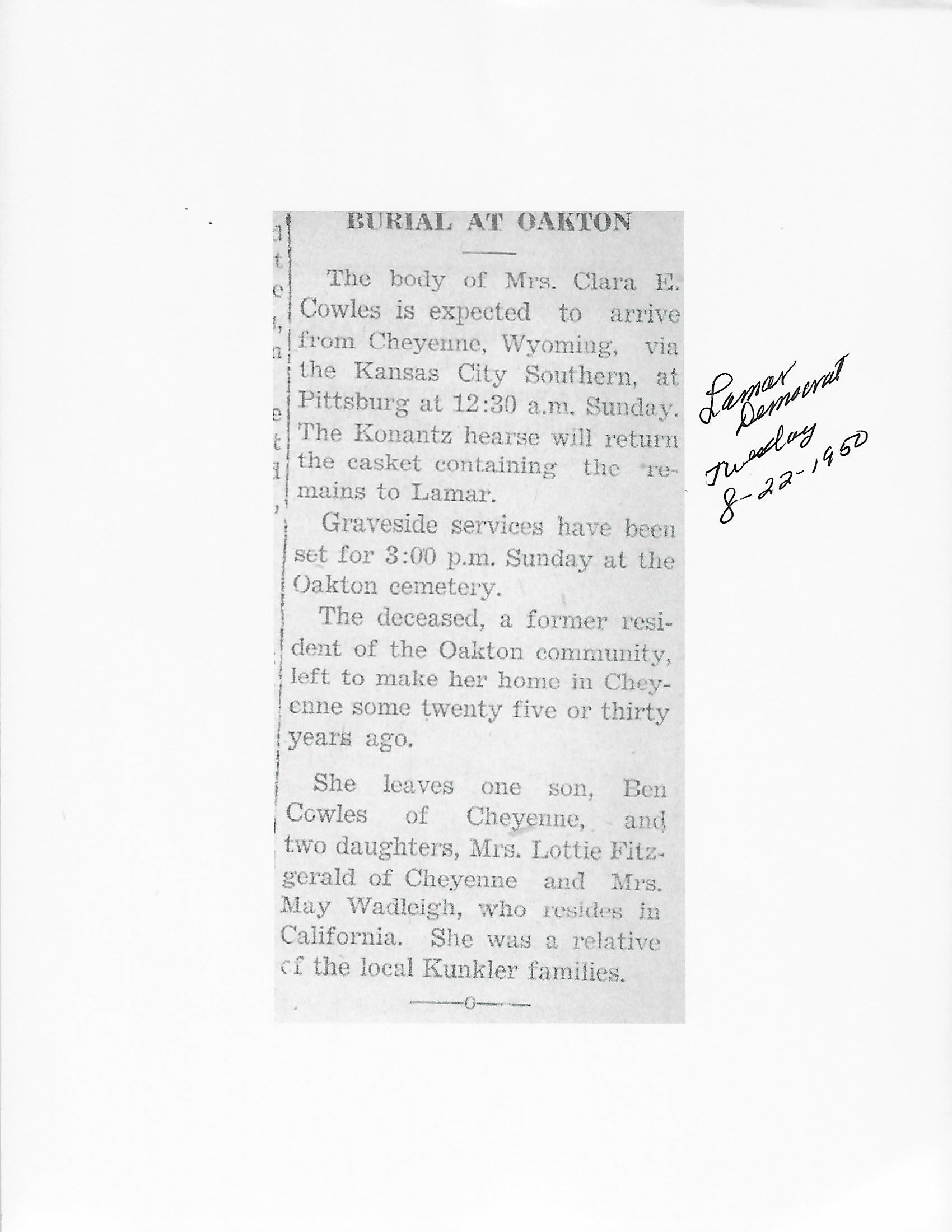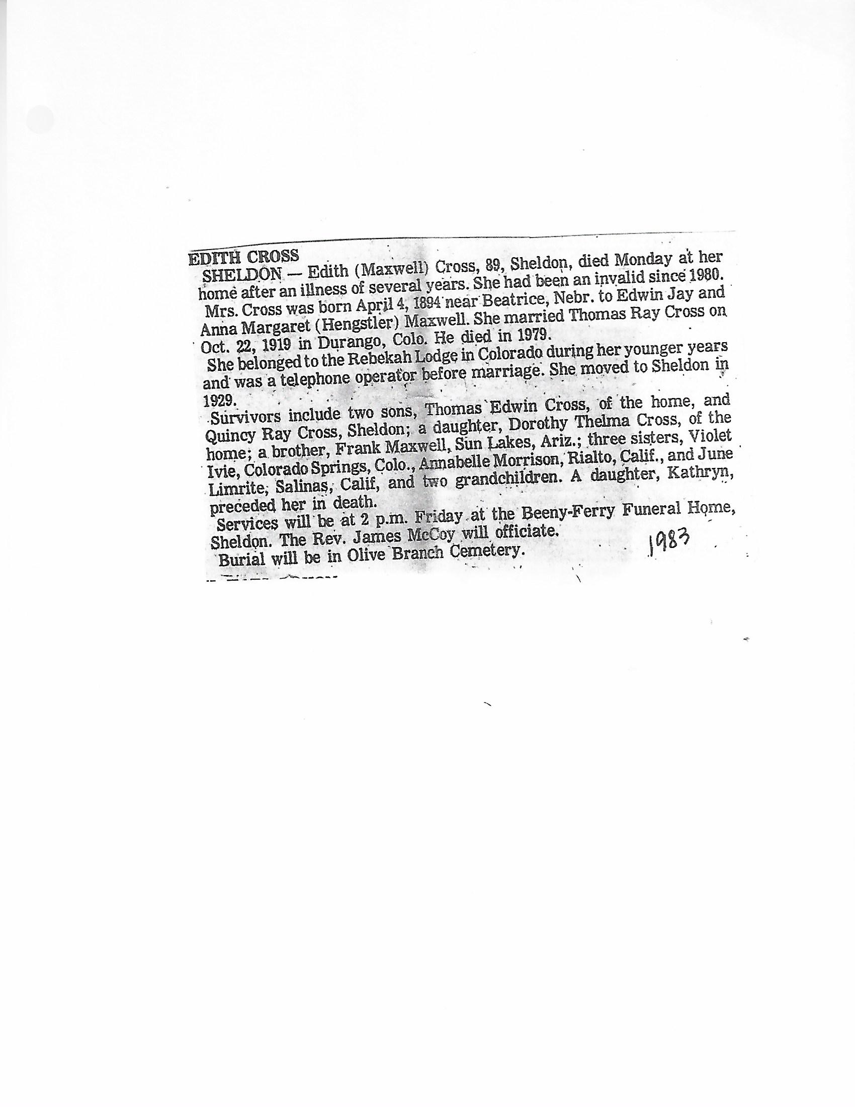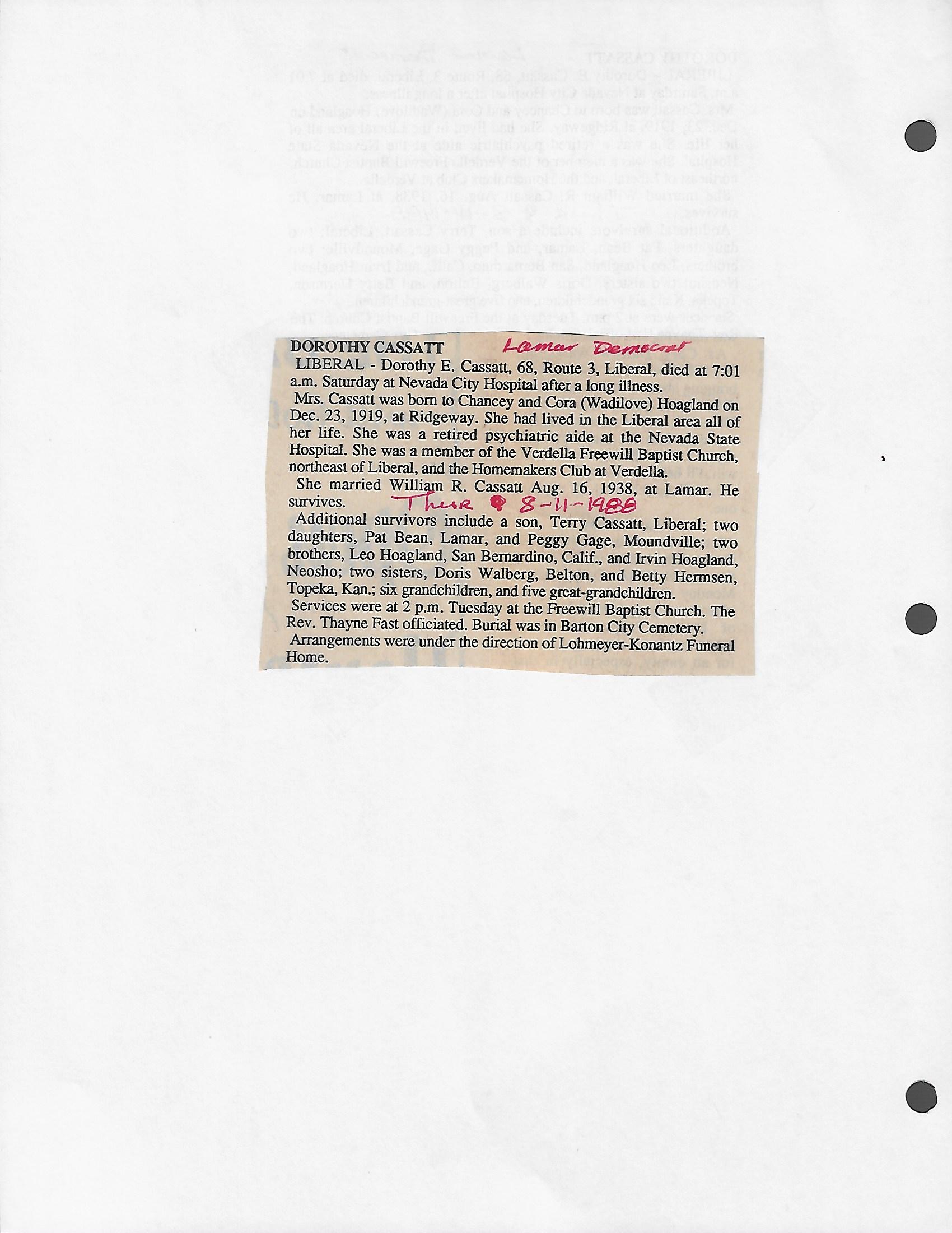 Cackley, Eva Irene