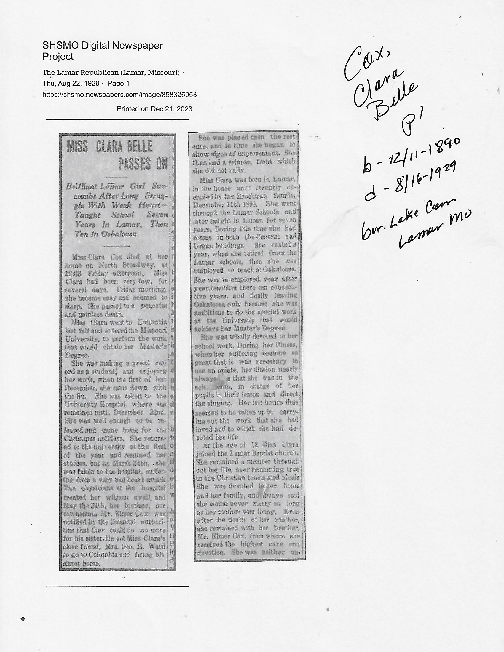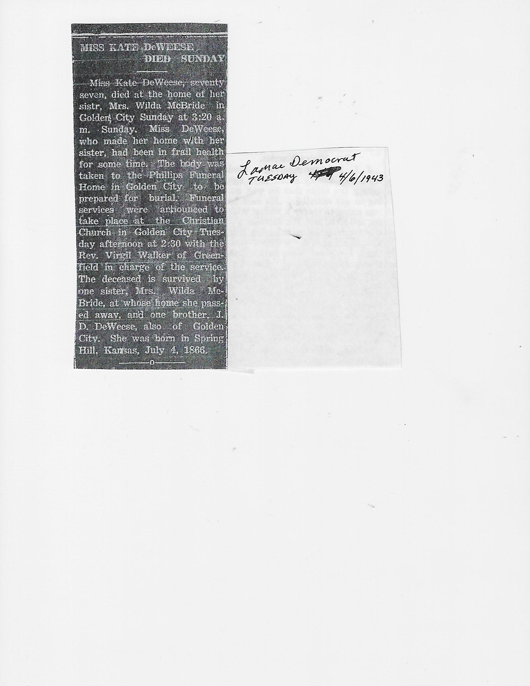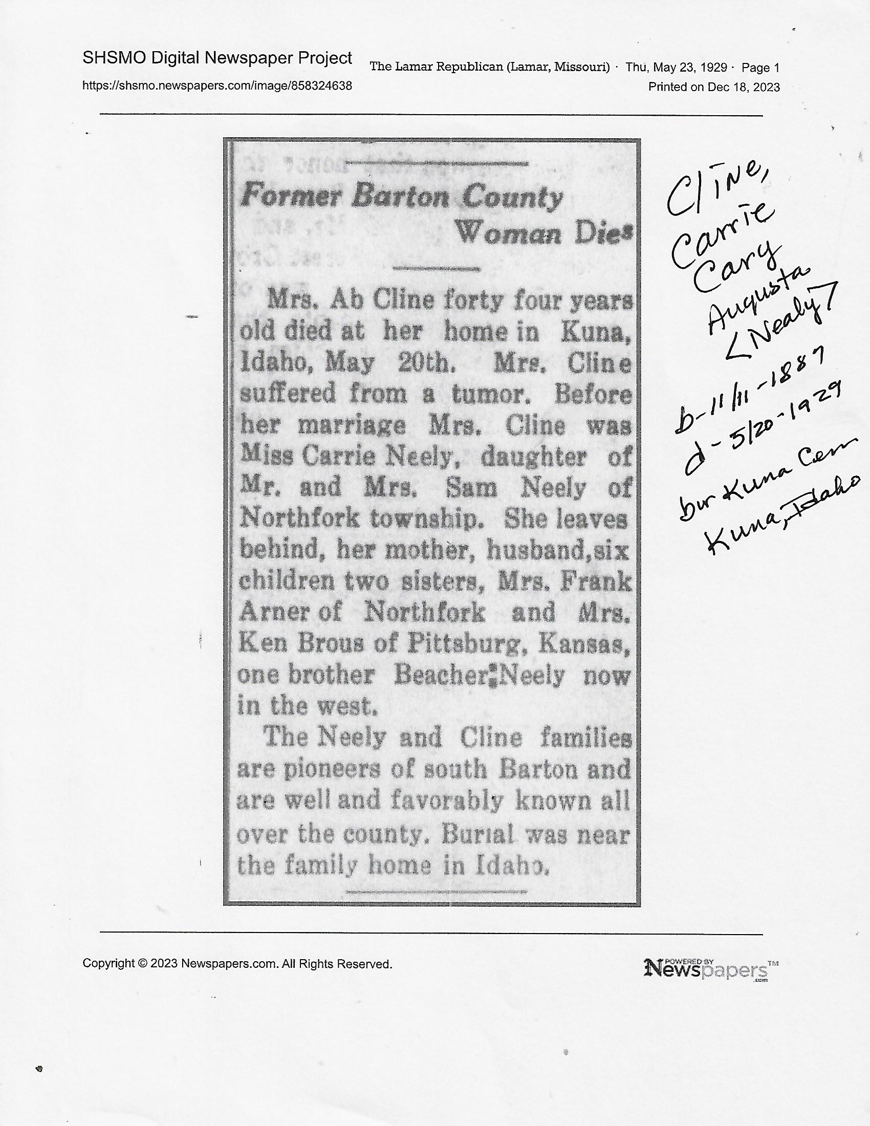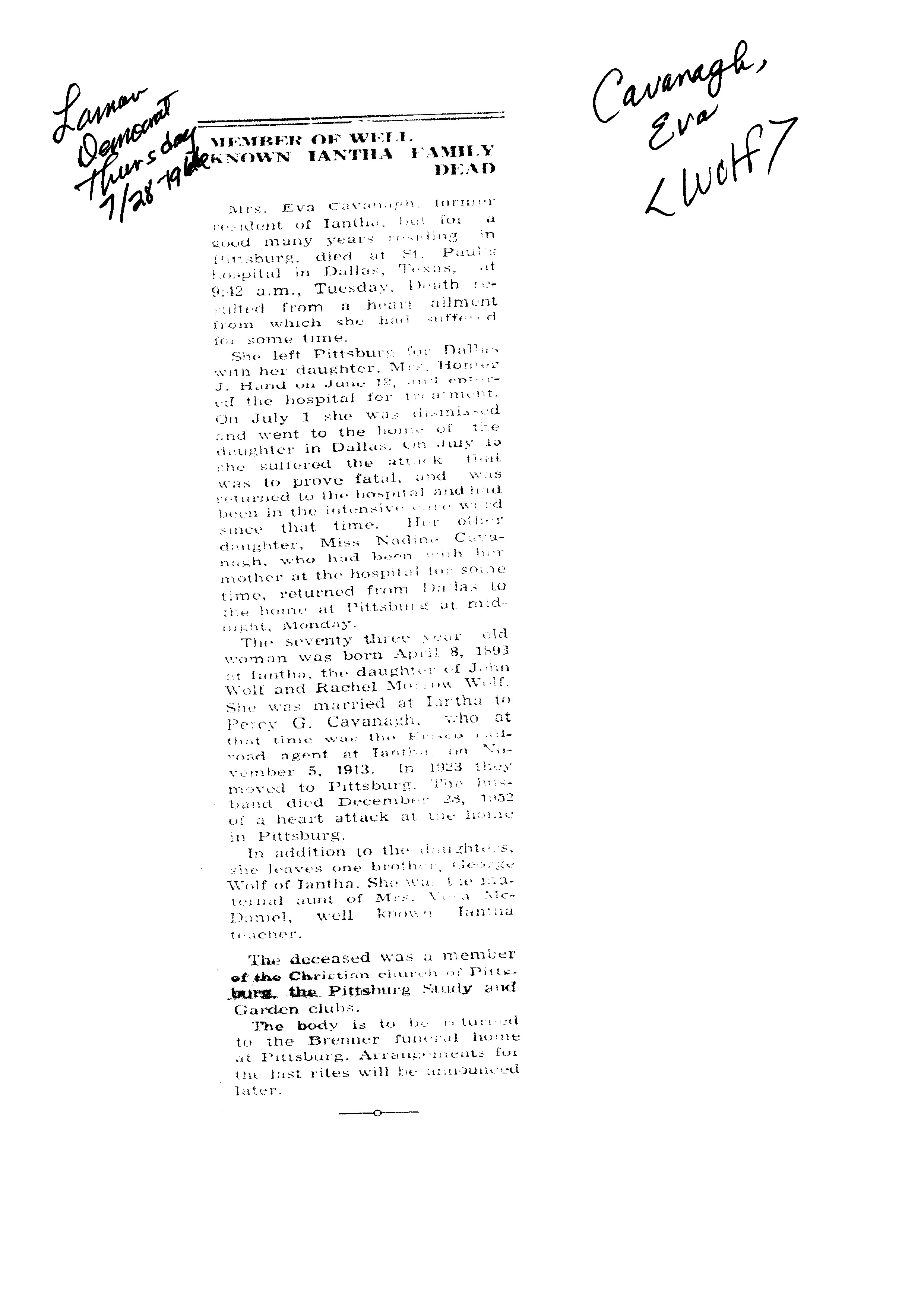 Cackley, Eva Irene