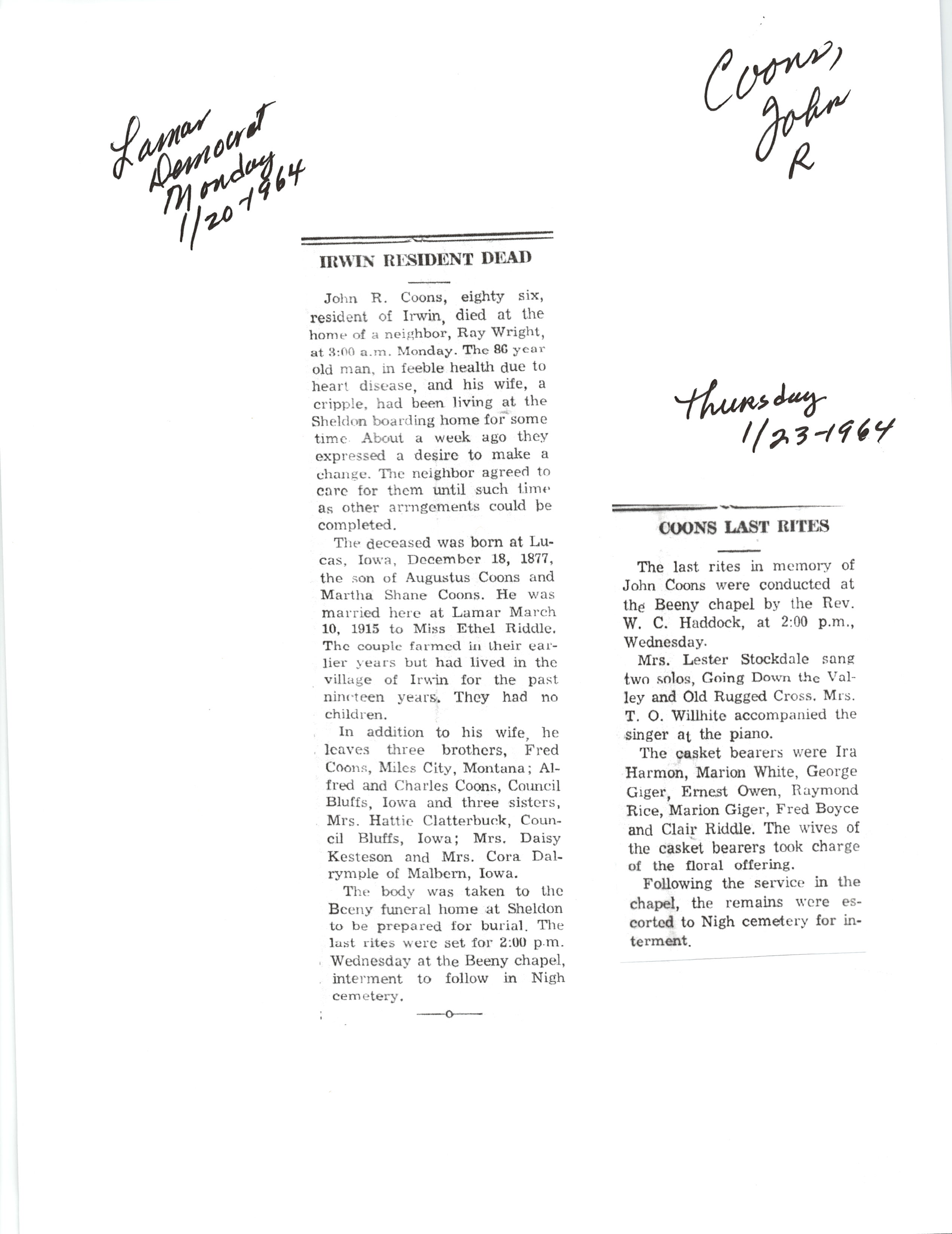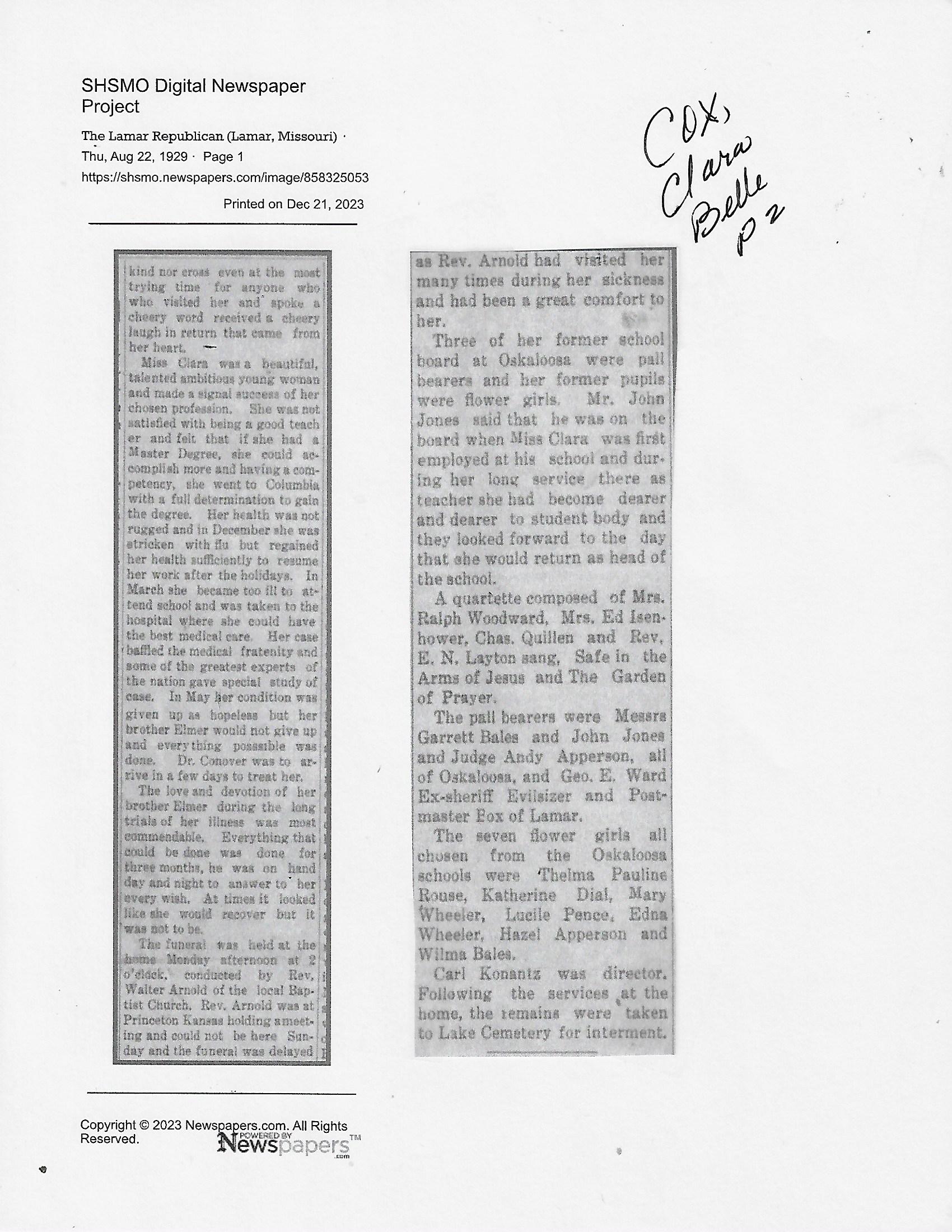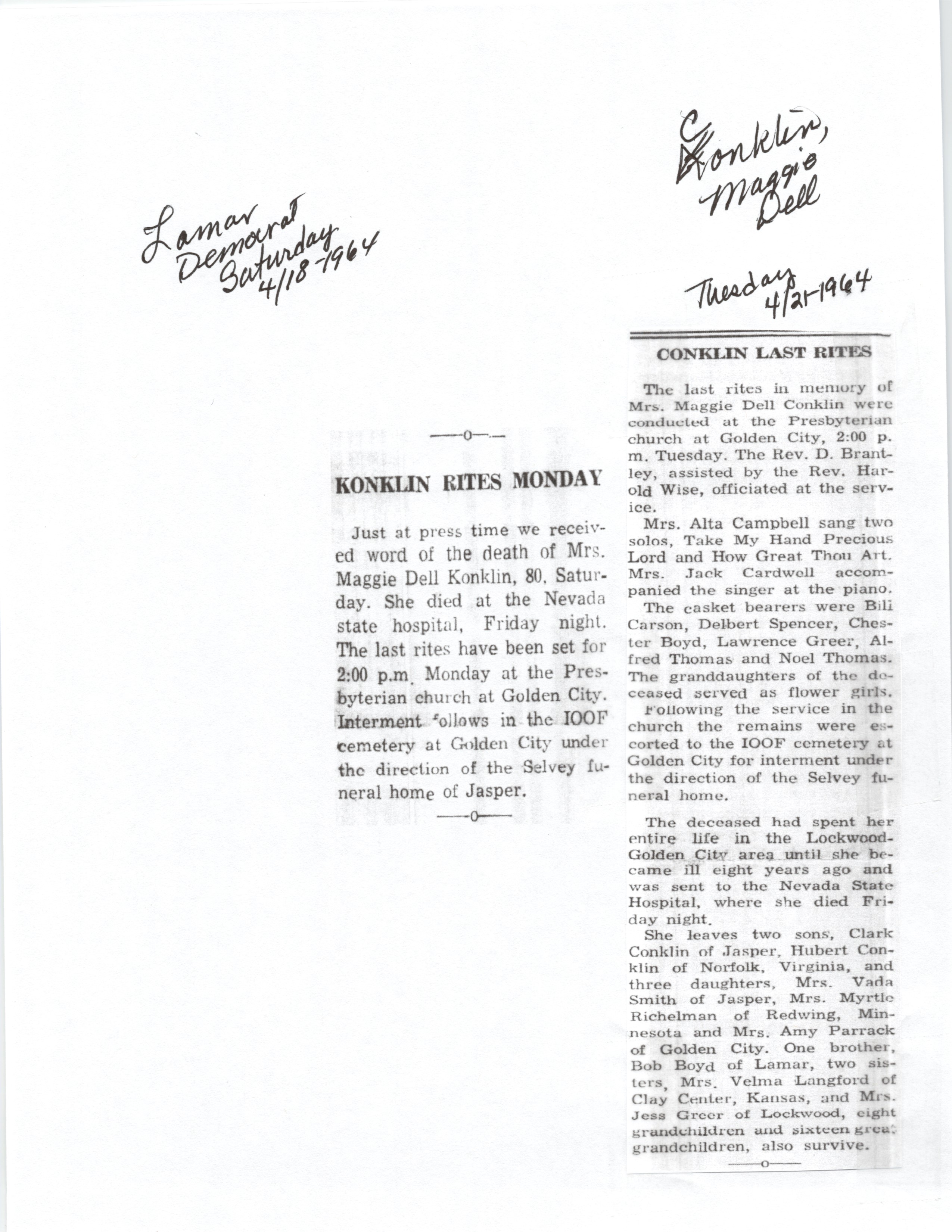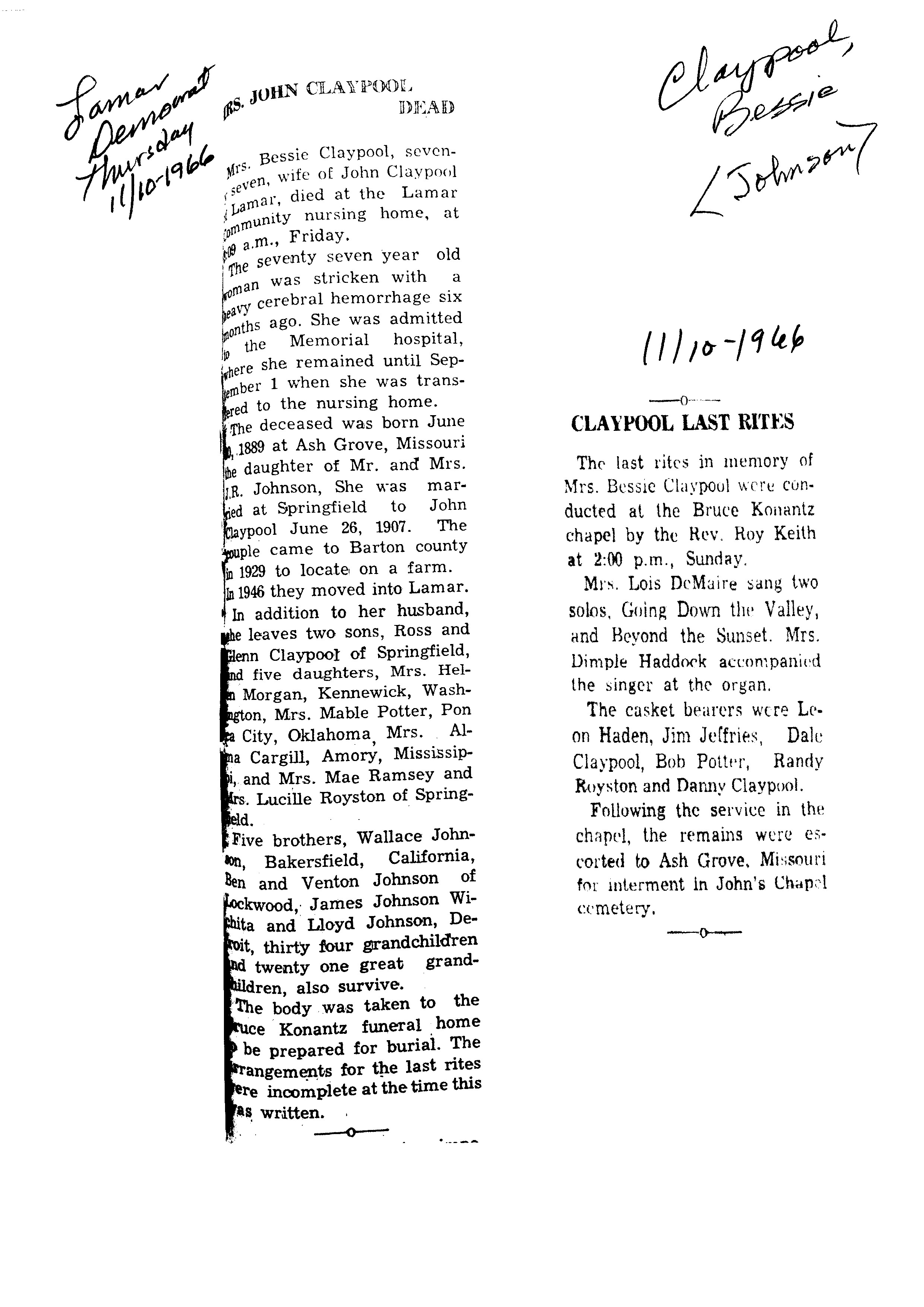 Cackley, Eva Irene