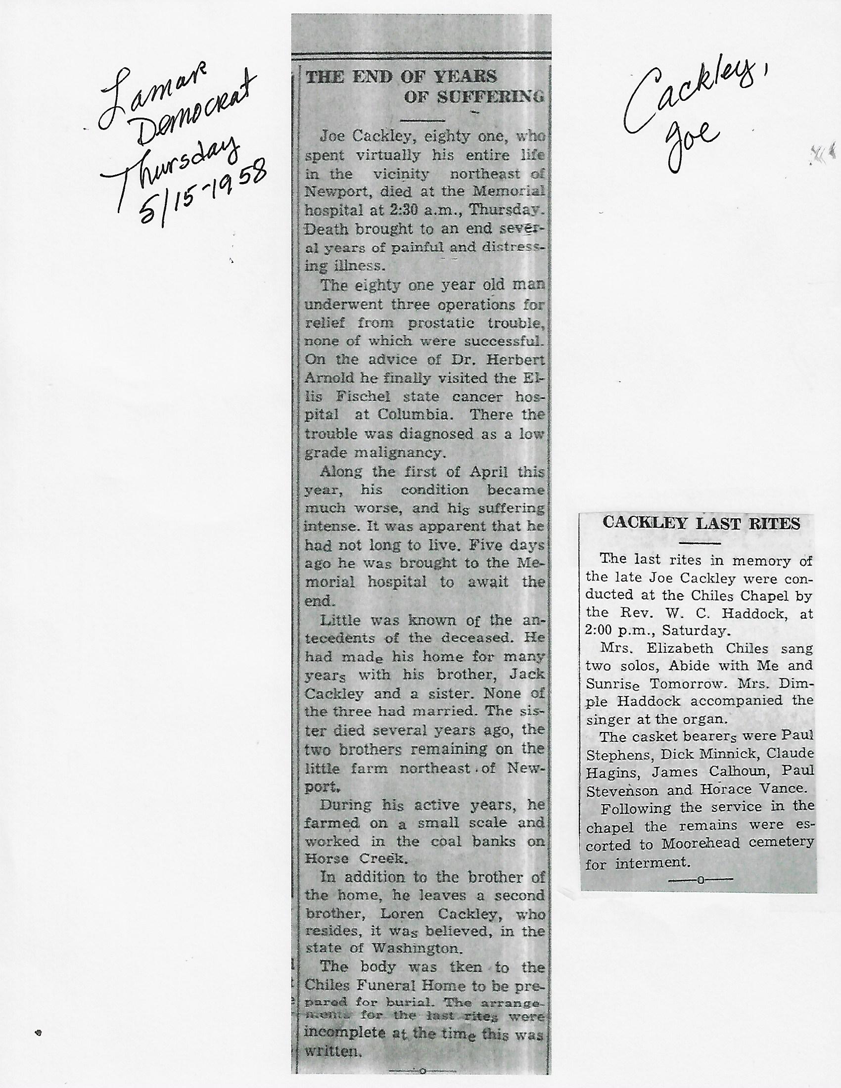 Cackley, Joseph Edward