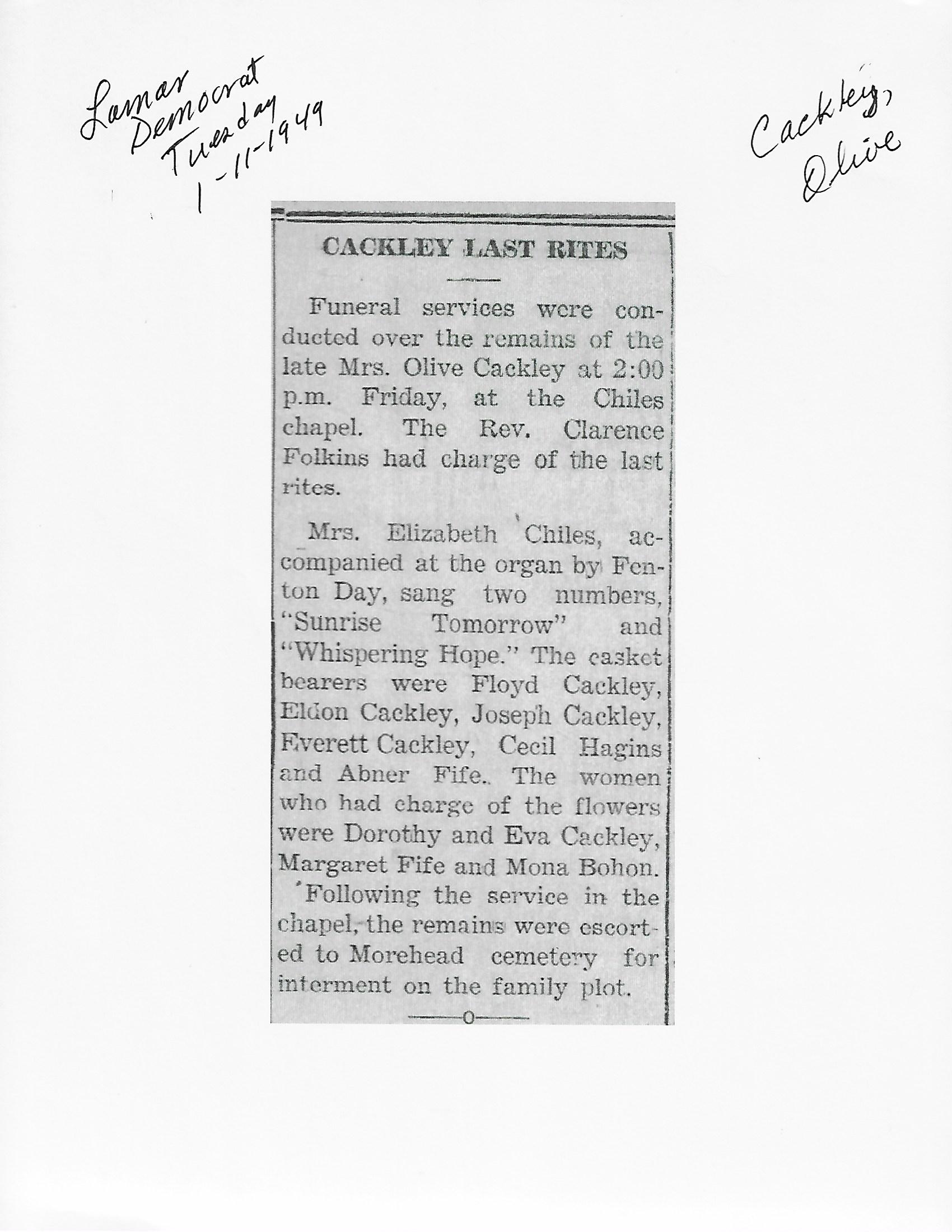 Cackley, Olive
